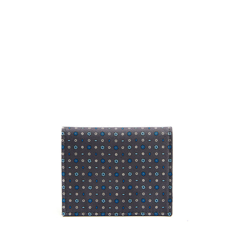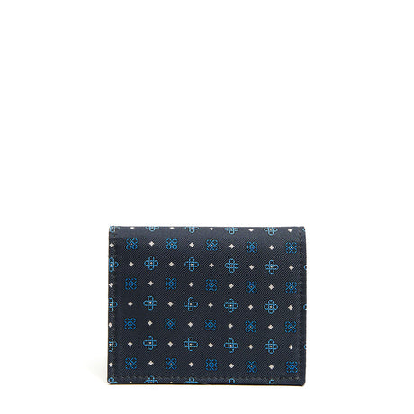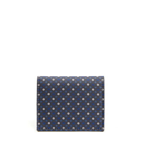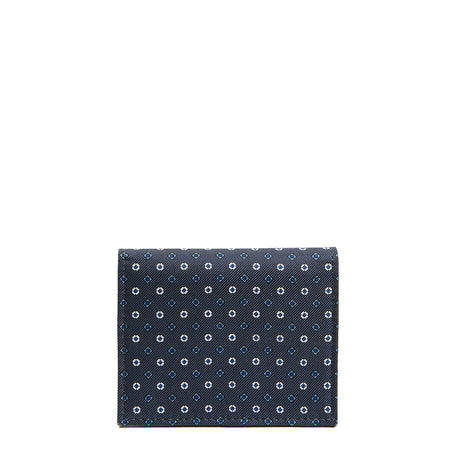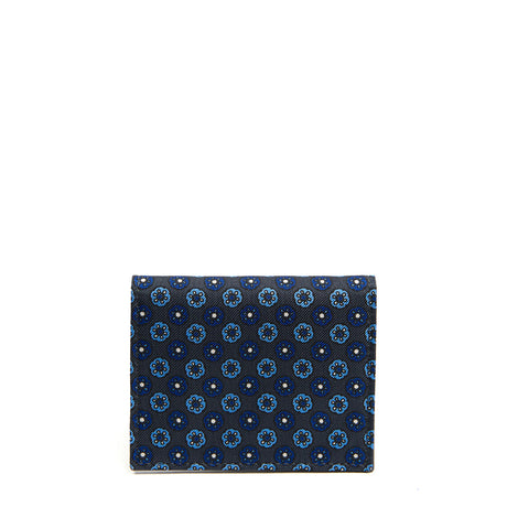 DARK BLUE SILK AND LEATHER FOLDING CARD HOLDER