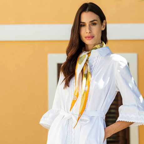 ORANGE TUBULAR SCARF IN COTTON VOILE AND SILK