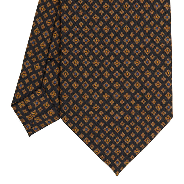 The E. Marinella tie is a hand-made product. From the hand-printed silk, to the individual cutting of each square, to the hand-closing of the final product. Characterised by rich colours, never excessive and by floral or geometric micro-designs. The tie is tipped with the same fabric as an extra detail. 3 fold tie