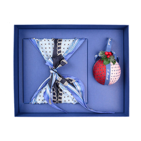 CHRISTMAS BOX WITH BLUE SILK DIAMOND SCARF