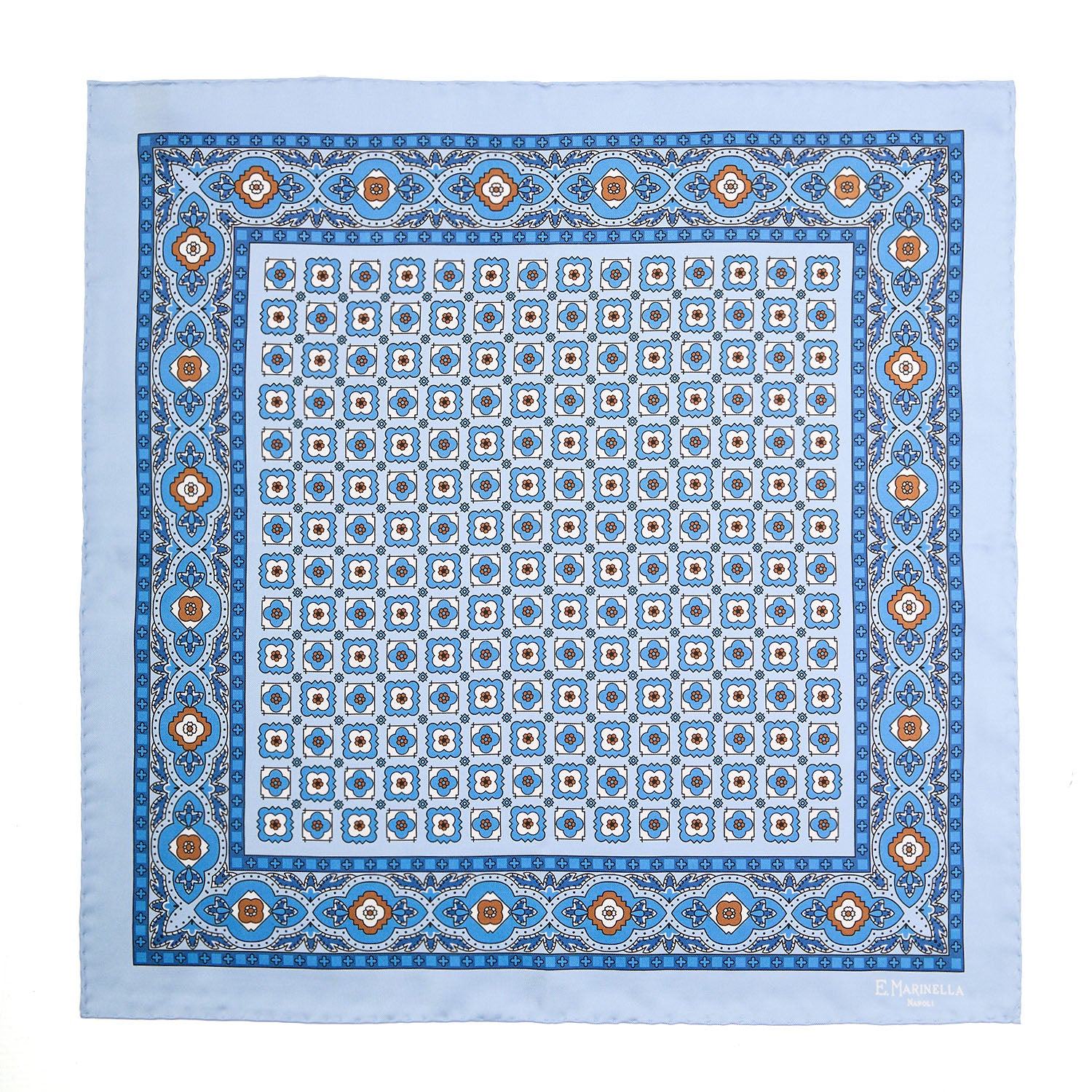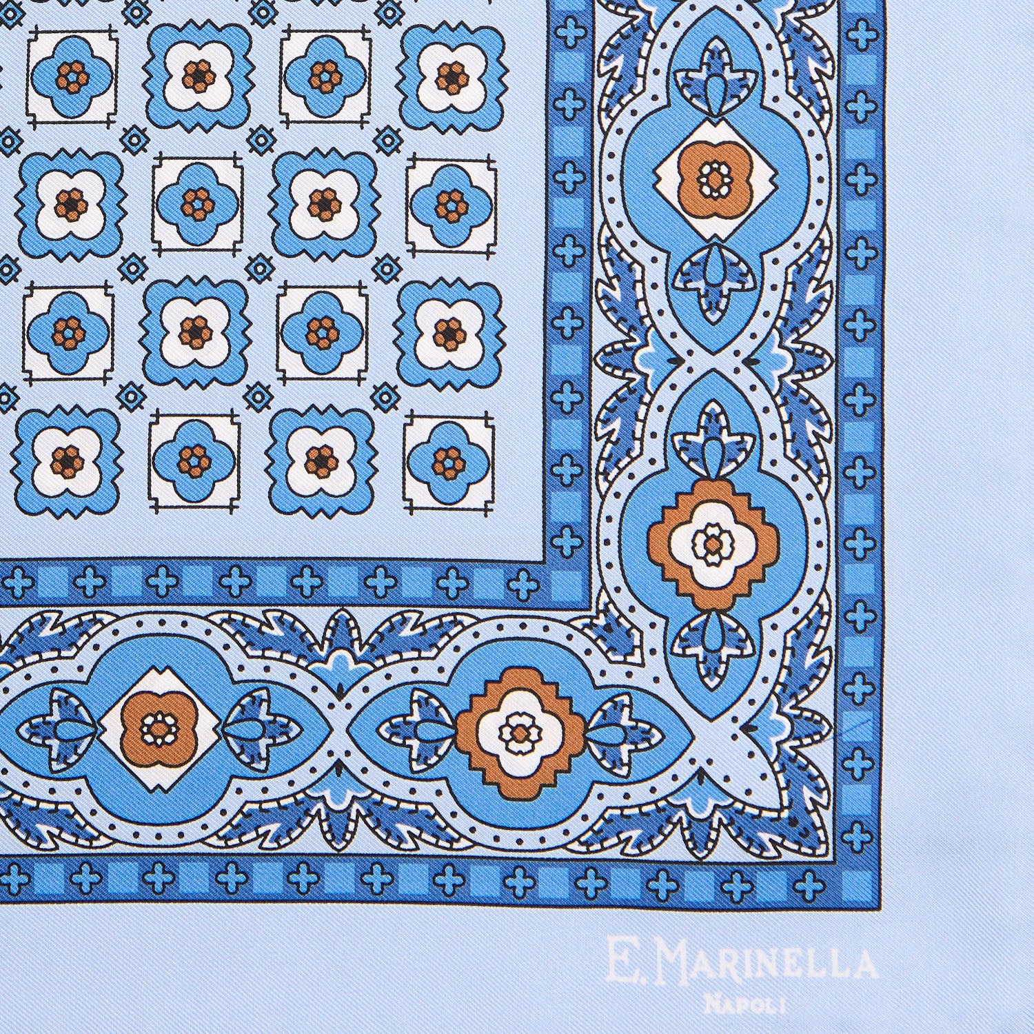 LIGHT BLUE HAND-PRINTED SILK POCKET SQUARE