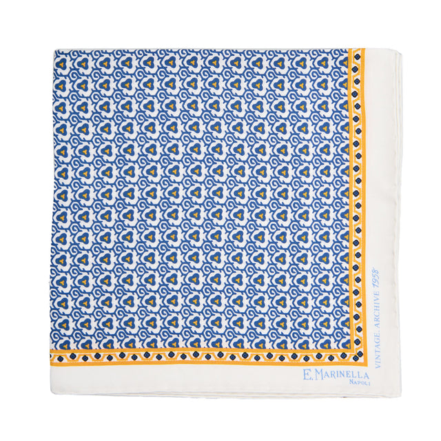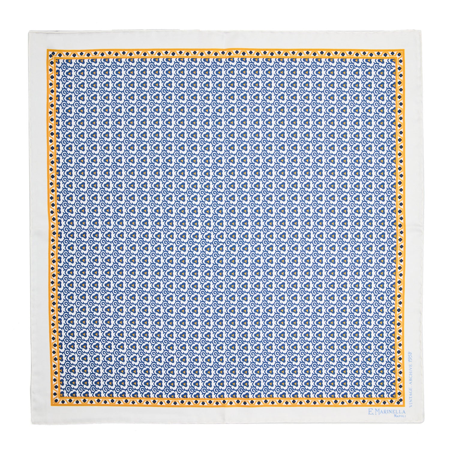 WHITE HAND-PRINTED SILK POCKET SQUARE