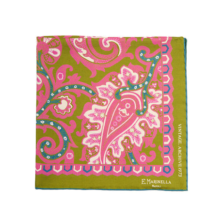 OLIVE GREEN HAND-PRINTED SILK POCKET SQUARE