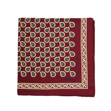 BURGUNDY HAND-PRINTED SILK POCKET SQUARE