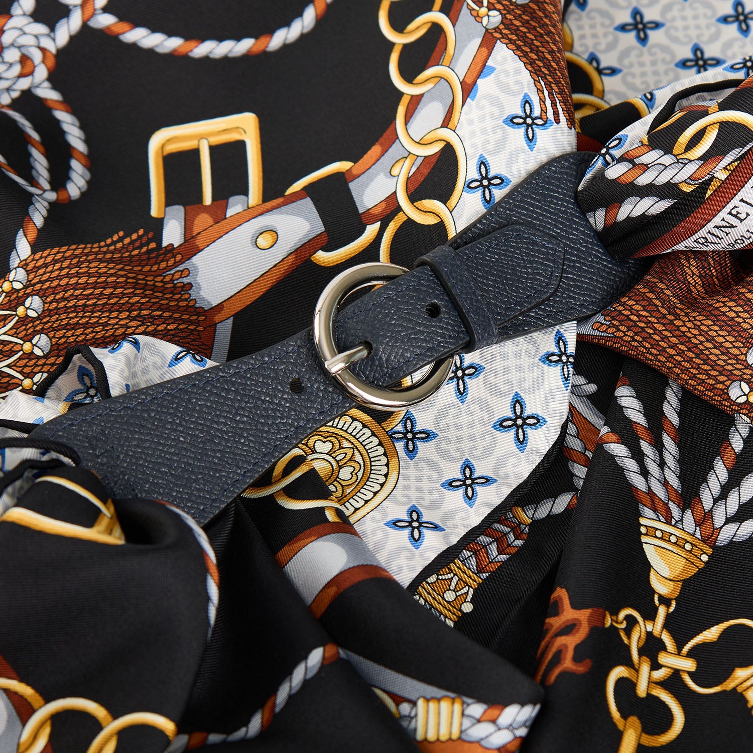DARK BLUE LEATHER SCARF-BUCKLE is backordered and will ship as soon as it is back in stock.
