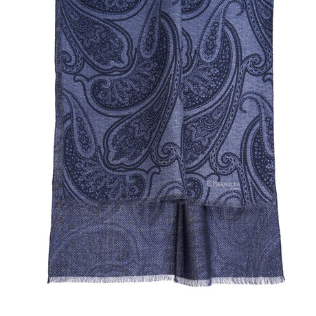 BICOLOR DARK BLUE AND BROWN SILK AND CASHMERE SCARF