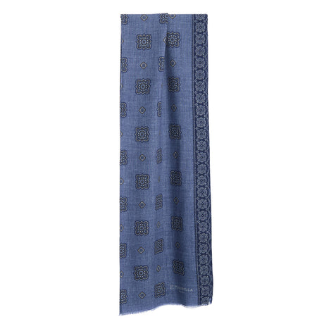 LIGHT GREY DOUBLE PATTERNED WOOL AND SILK SCARF
