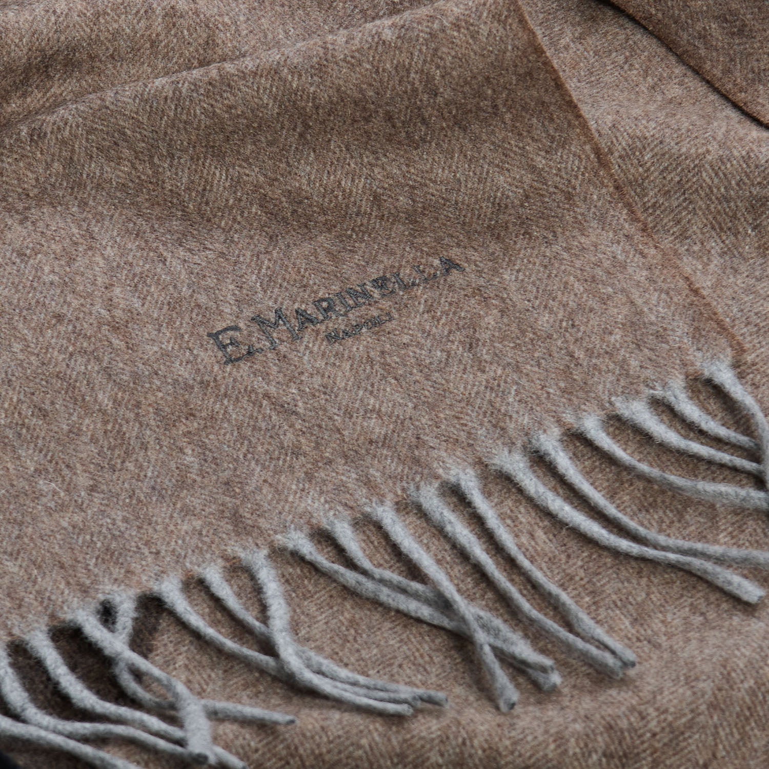 Silk and cashmere scarf with soft and warm touch finished with fringes at the bottom and embroidered logo tone on tone.
