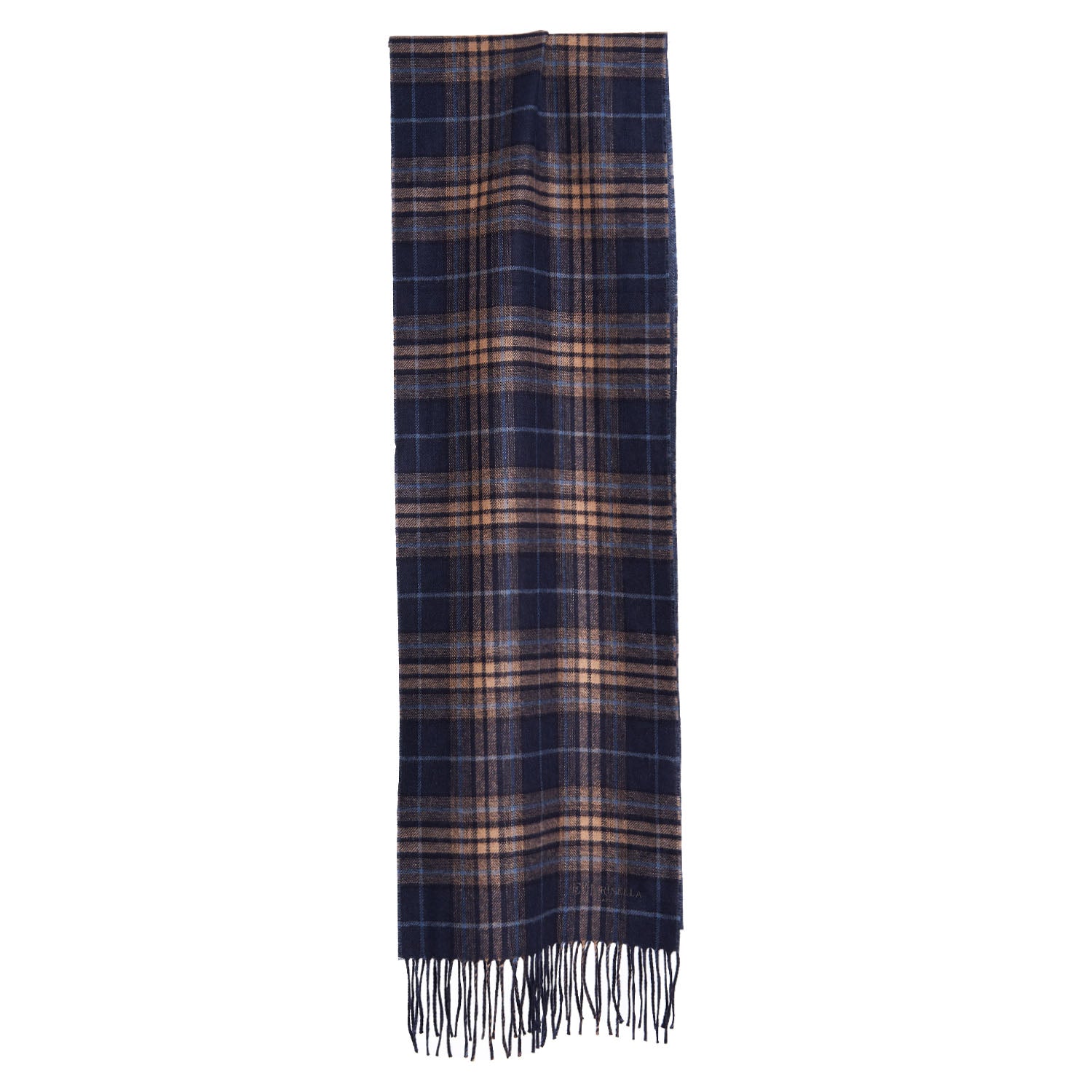 Silk and cashmere scarf with soft and warm touch finished with fringes at the bottom and embroidered logo tone on tone.