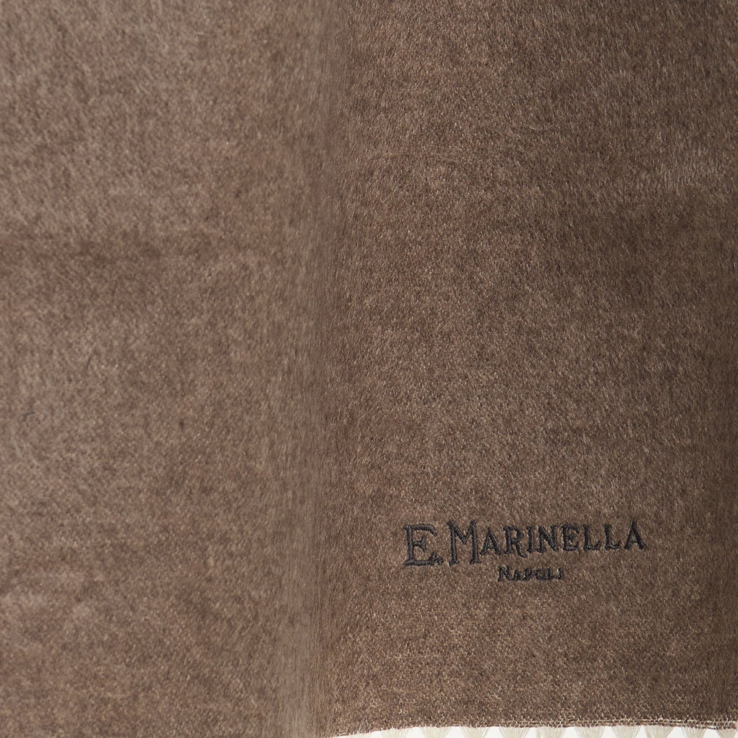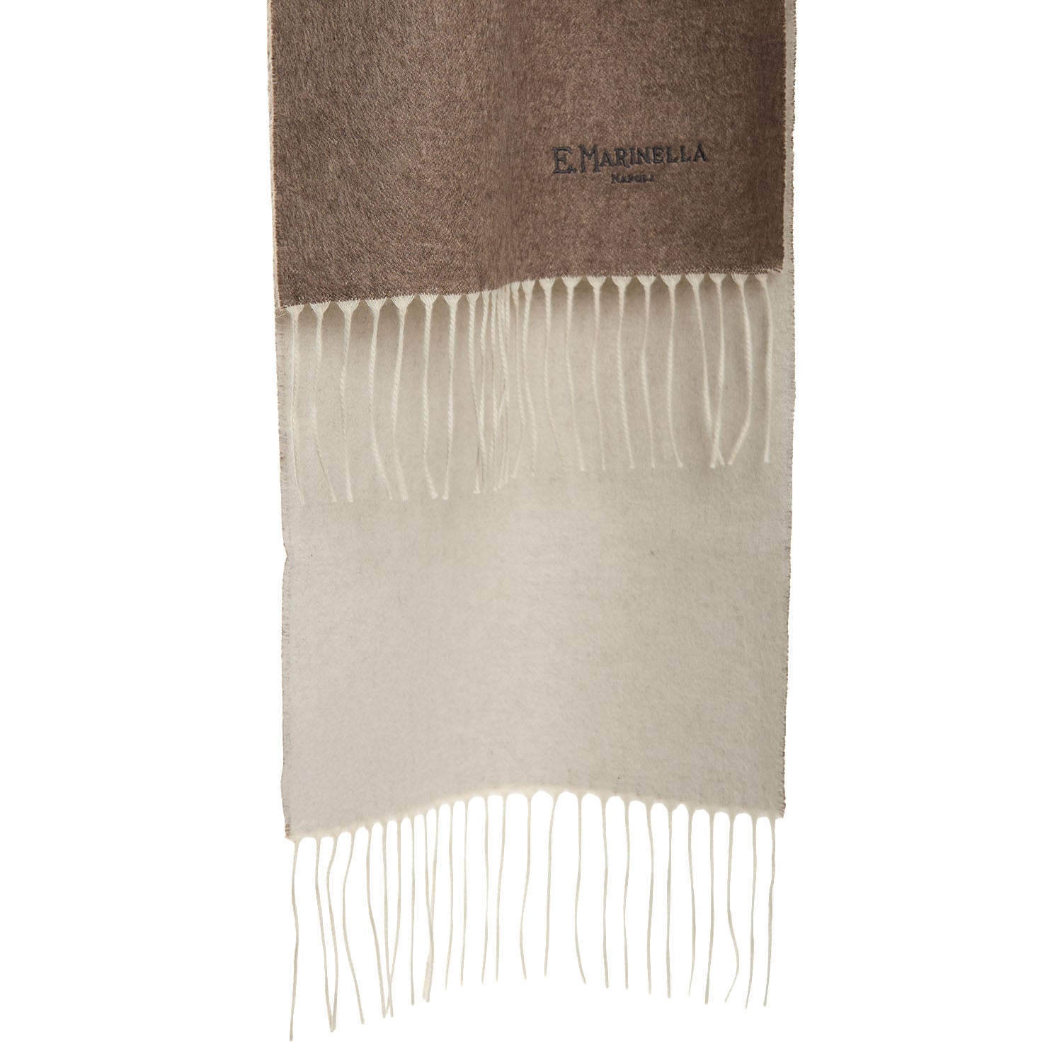 Silk and cashmere scarf with soft and warm touch finished with fringes at the bottom and embroidered logo tone on tone.