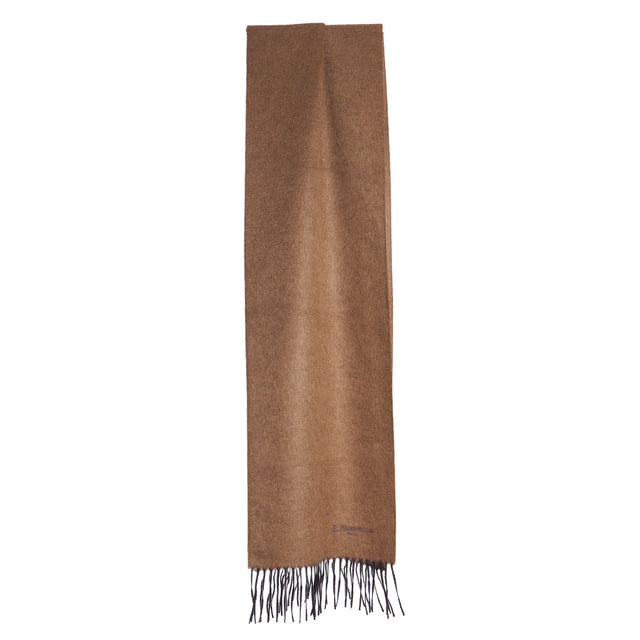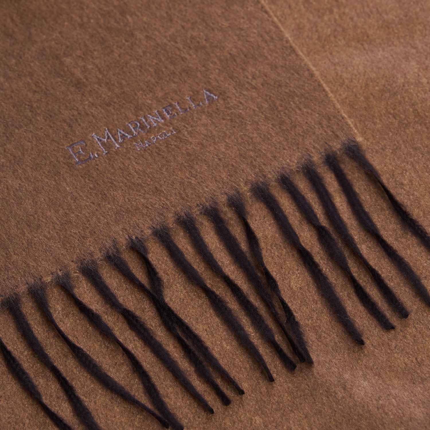 Silk and cashmere scarf with soft and warm touch finished with fringes at the bottom and embroidered logo tone on tone.