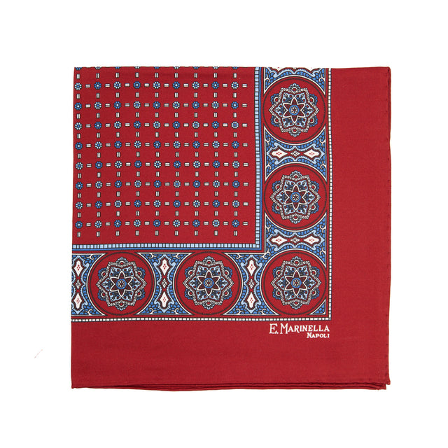 BURGUNDY HAND-PRINTED SILK POCKET SQUARE