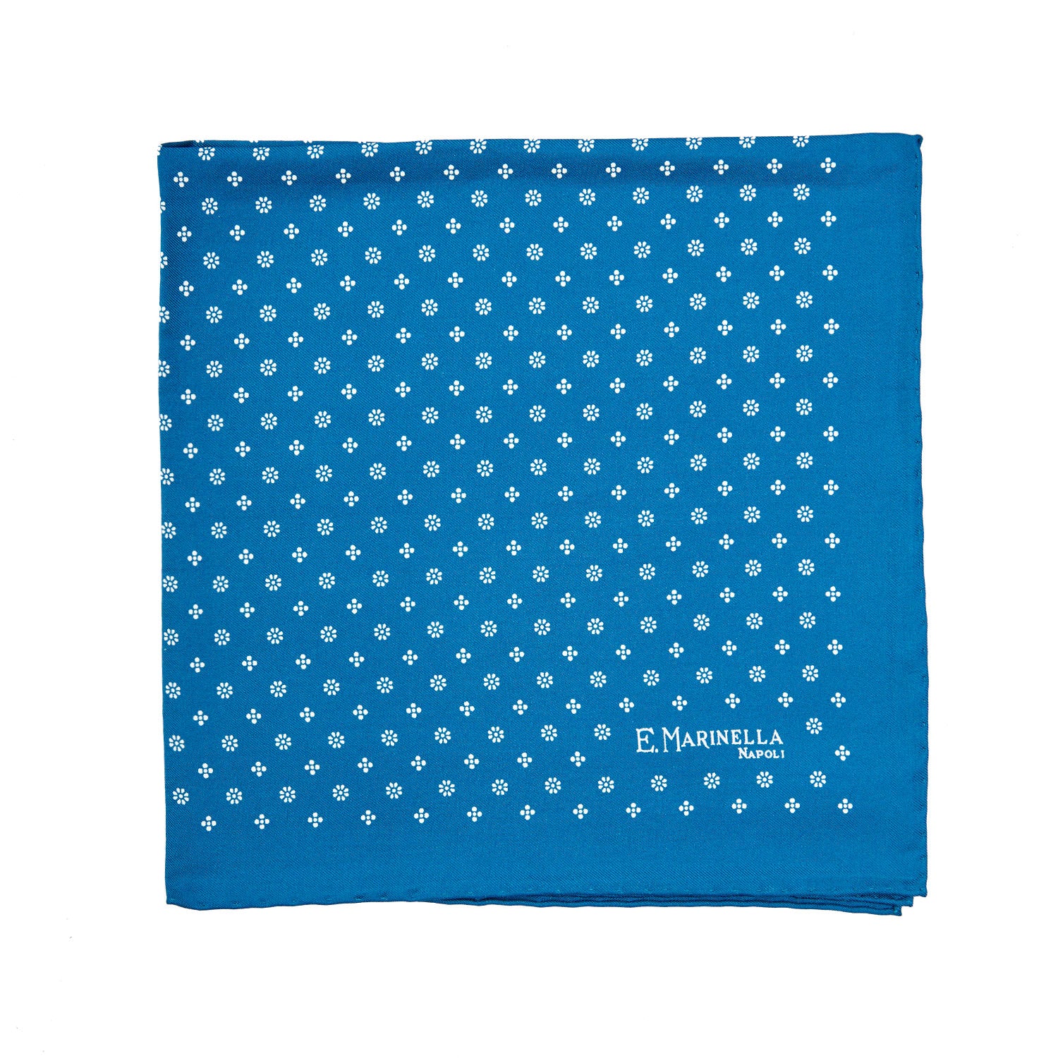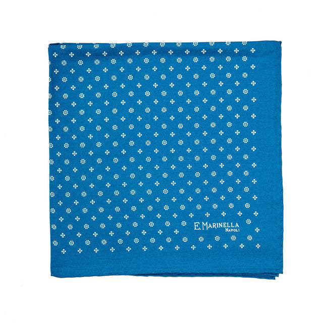 MID BLUE HAND-PRINTED SILK POCKET SQUARE