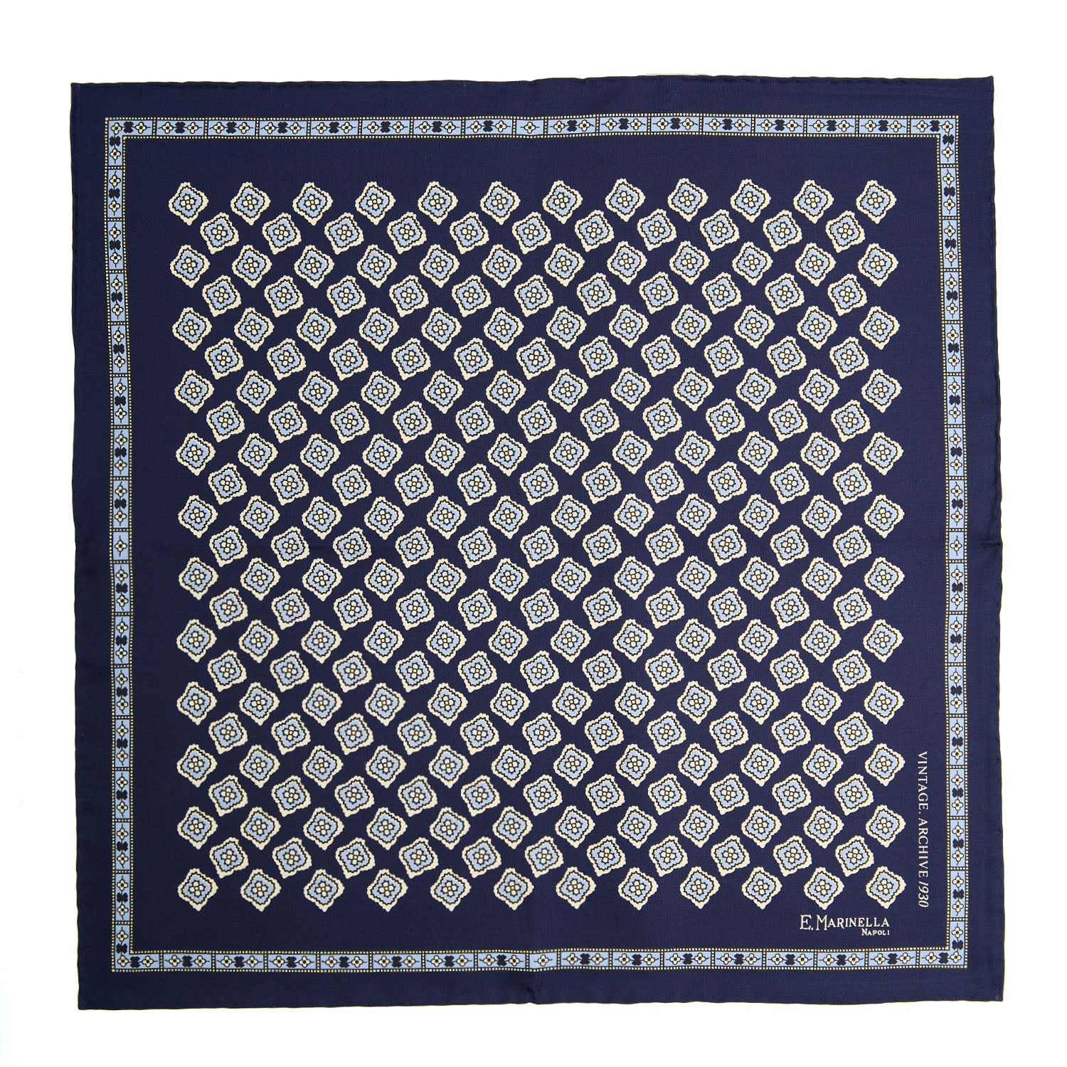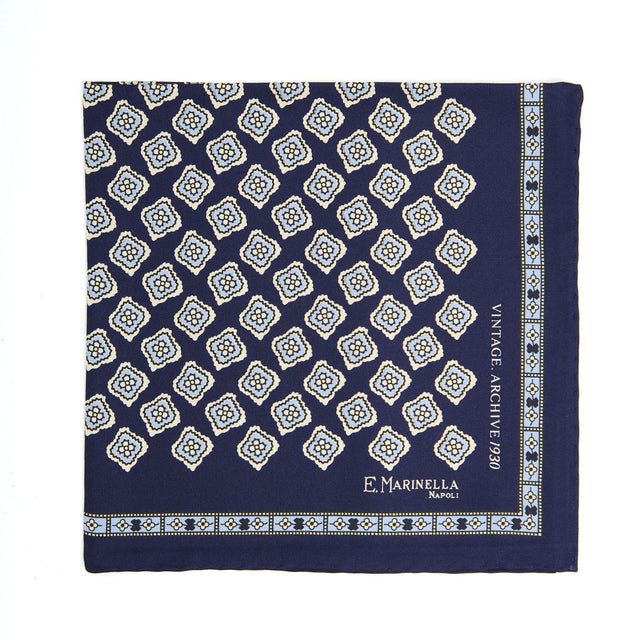 DARK BLUE HAND-PRINTED SILK POCKET SQUARE