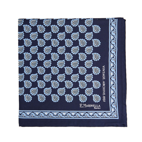 DARK BLUE HAND-PRINTED SILK POCKET SQUARE
