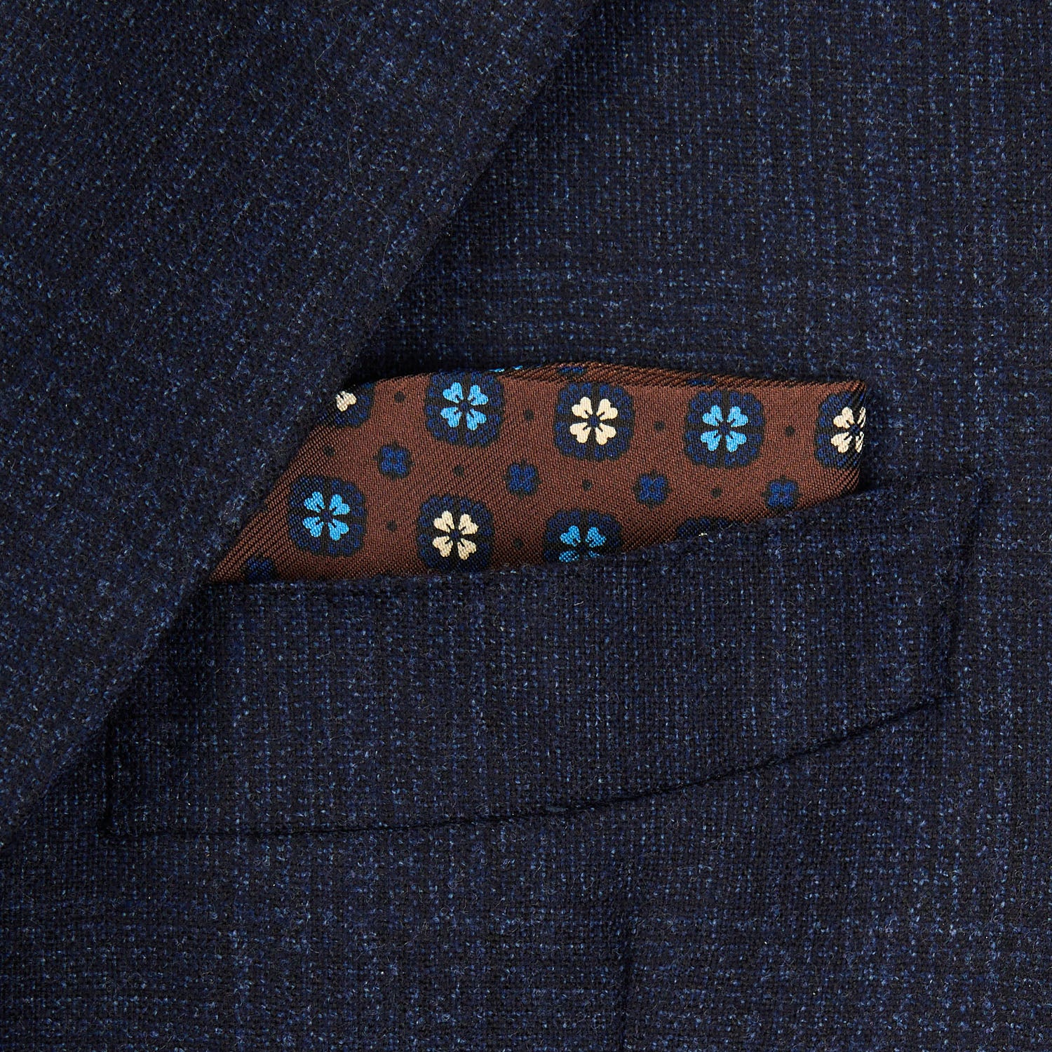 Glasses case in hand-printed silk. with signature E. Marinella patterns and colours. Completely handmade, it is an elegant and convenient way to protect and keep your glasses safe. Worn in the breast pocket, it serves almost as a pocket square, adding colour and contrast to complete your outfit.