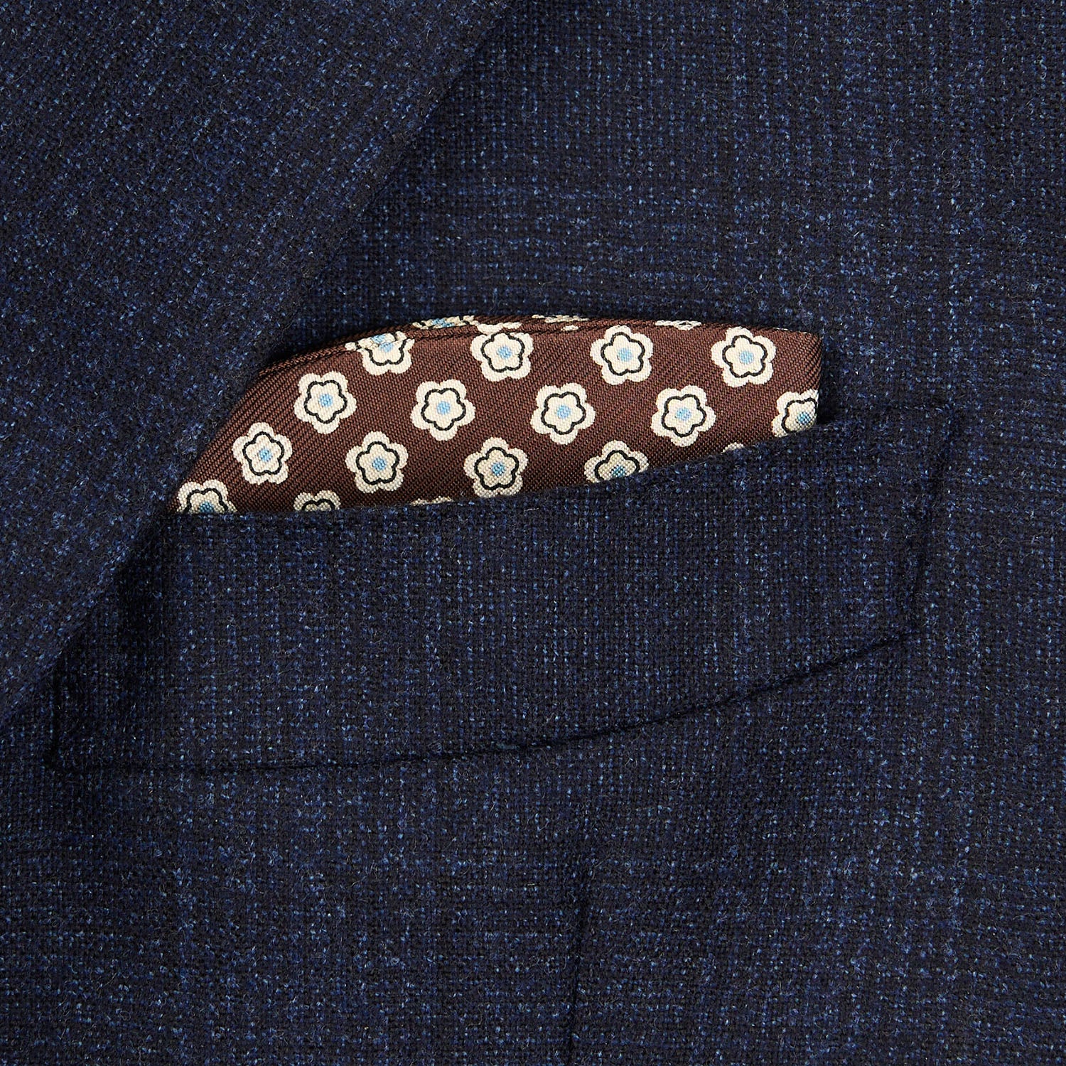 Glasses case in hand-printed silk. with signature E. Marinella patterns and colours. Completely handmade, it is an elegant and convenient way to protect and keep your glasses safe. Worn in the breast pocket, it serves almost as a pocket square, adding colour and contrast to complete your outfit.
