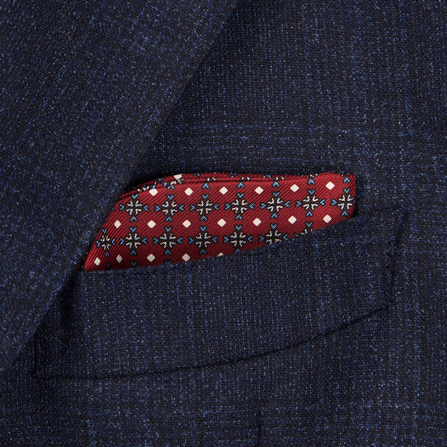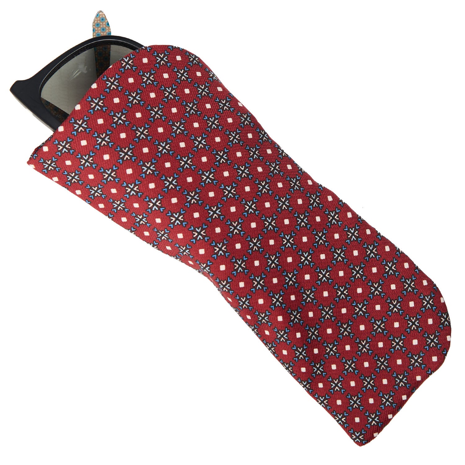 Glasses case in hand-printed silk. with signature E. Marinella patterns and colours. Completely handmade, it is an elegant and convenient way to protect and keep your glasses safe. Worn in the breast pocket, it serves almost as a pocket square, adding colour and contrast to complete your outfit.