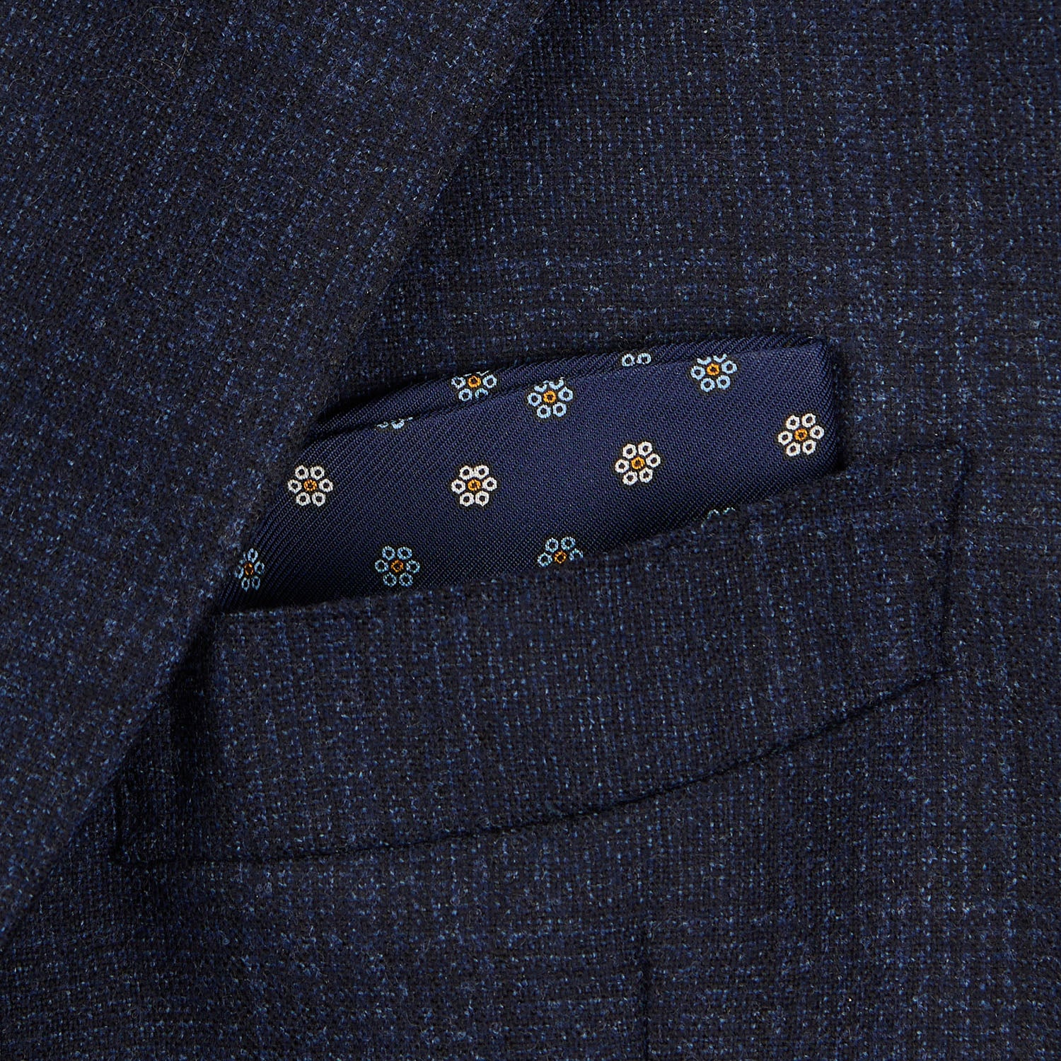 Glasses case in hand-printed silk. with signature E. Marinella patterns and colours. Completely handmade, it is an elegant and convenient way to protect and keep your glasses safe. Worn in the breast pocket, it serves almost as a pocket square, adding colour and contrast to complete your outfit.