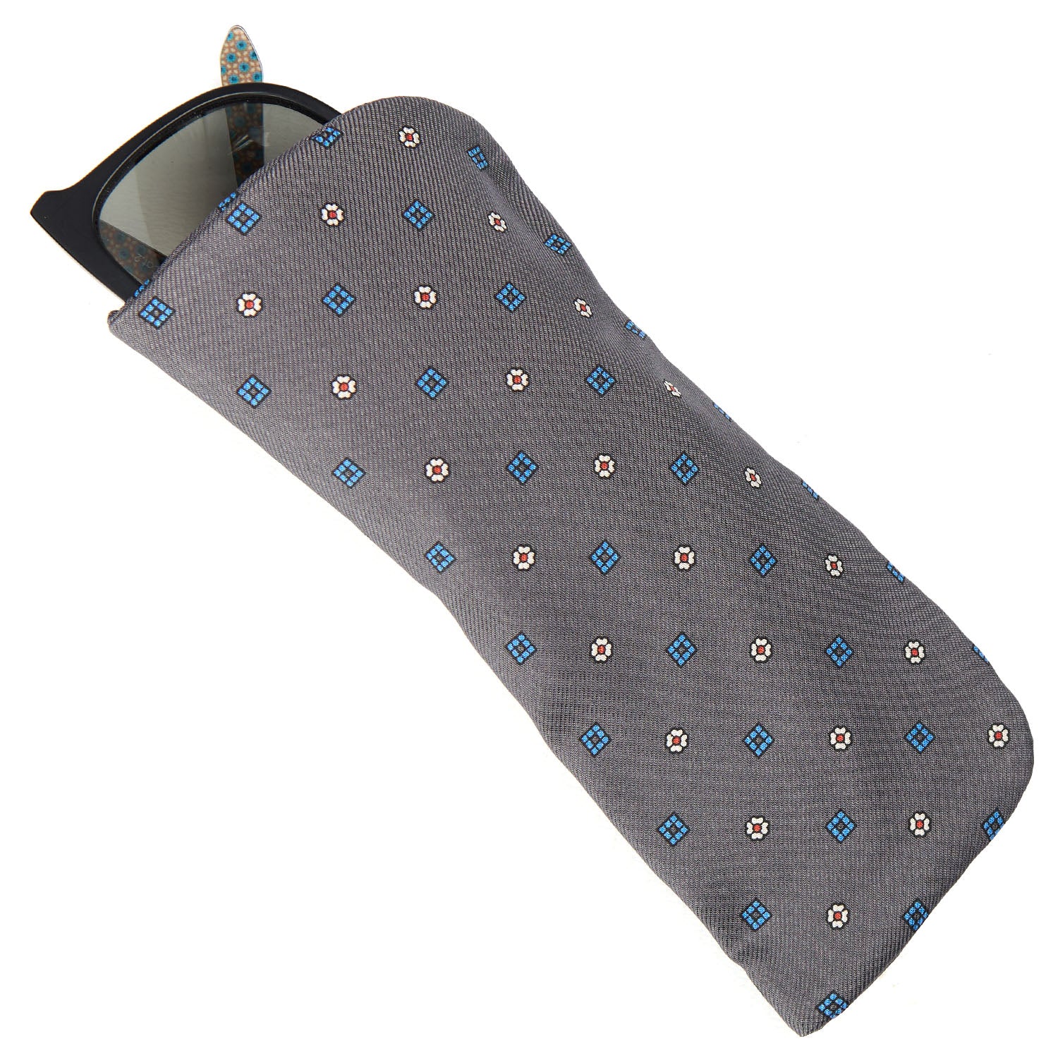 Glasses case in hand-printed silk. with signature E. Marinella patterns and colours. Completely handmade, it is an elegant and convenient way to protect and keep your glasses safe. Worn in the breast pocket, it serves almost as a pocket square, adding colour and contrast to complete your outfit.
