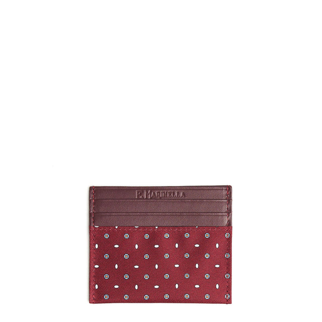 BURGUNDY LEATHER AND SILK CREDIT CARD HOLDER