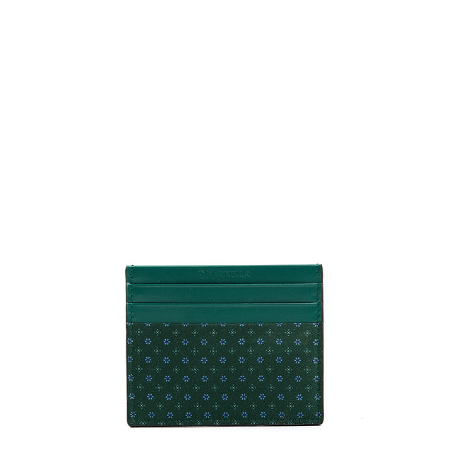 DARK GREEN LEATHER AND SILK CREDIT CARD HOLDER