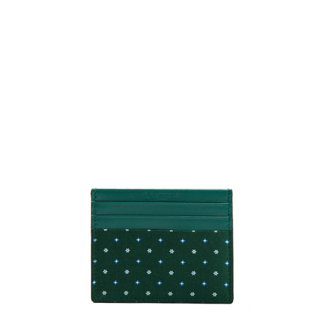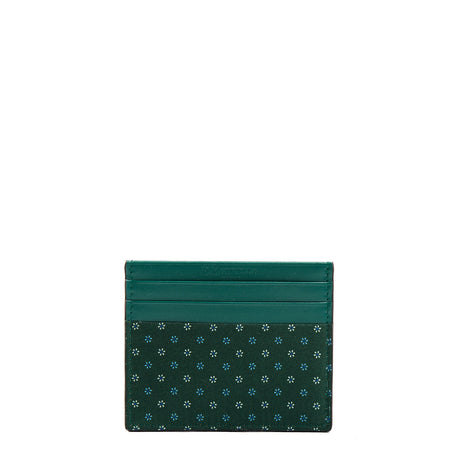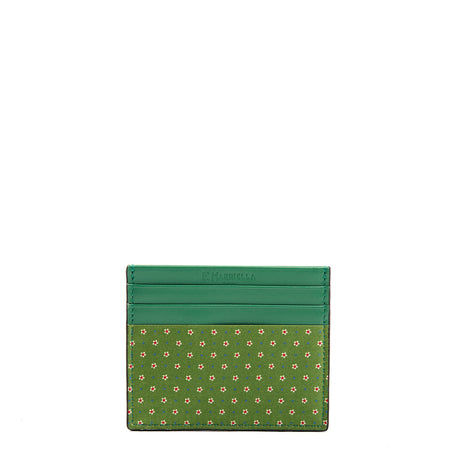 DARK GREEN LEATHER AND SILK CREDIT CARD HOLDER