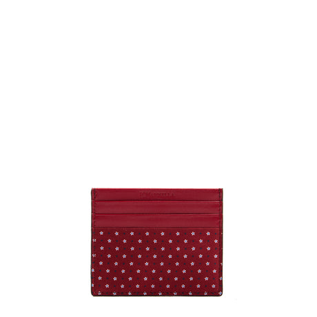 BURGUNDY LEATHER AND SILK CREDIT CARD HOLDER
