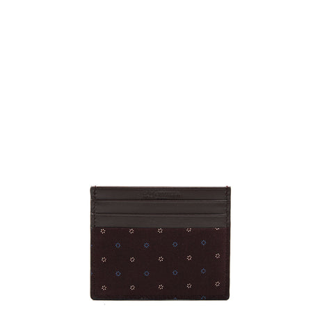 DARK BROWN LEATHER AND SILK CREDIT CARD HOLDER