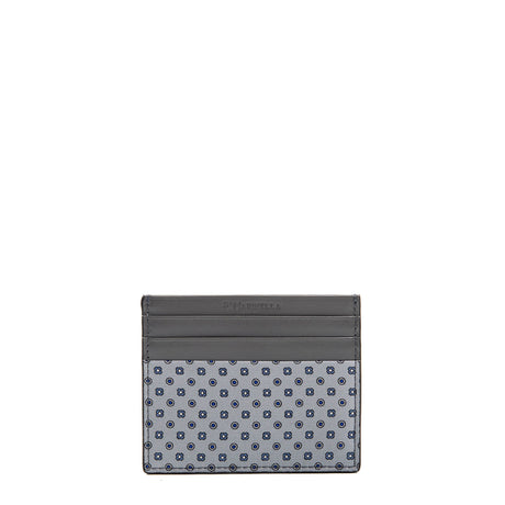 DARK GREY LEATHER AND SILK CREDIT CARD HOLDER