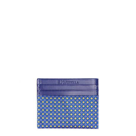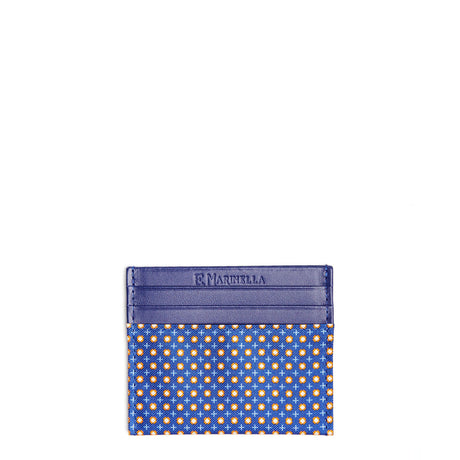 BLUE LEATHER AND SILK CREDIT CARD HOLDER