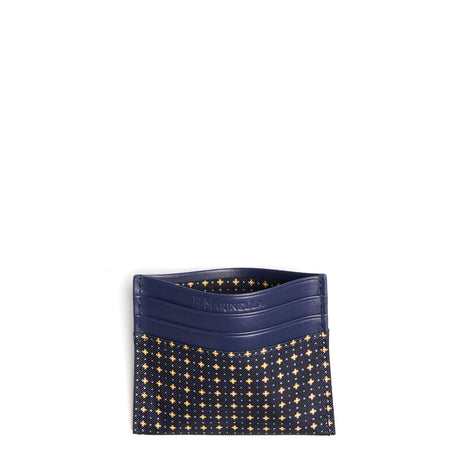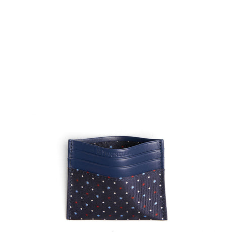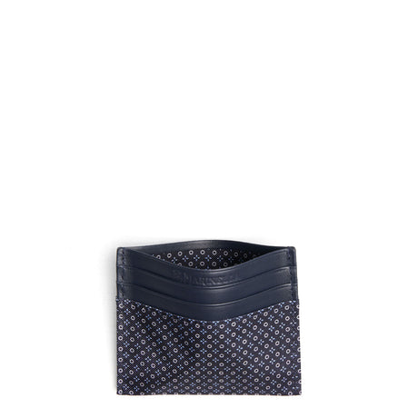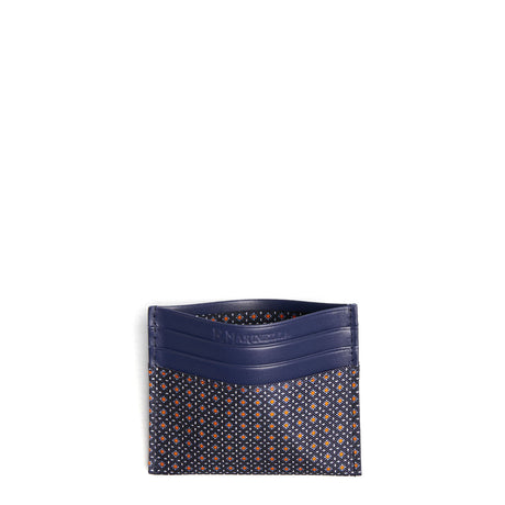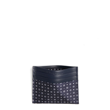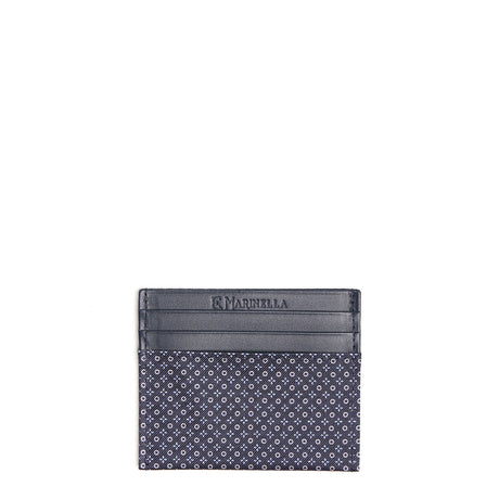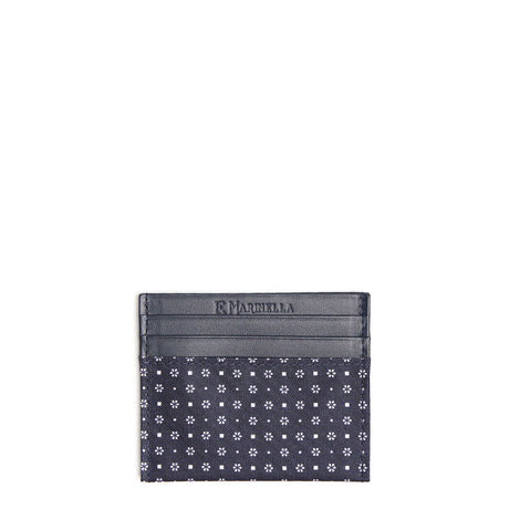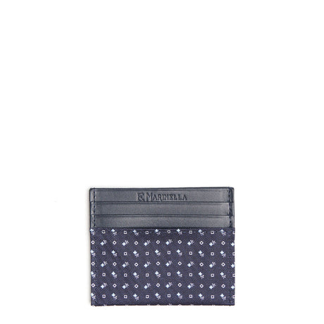 DARK BLUE SILK AND LEATHER CREDIT CARD HOLDER