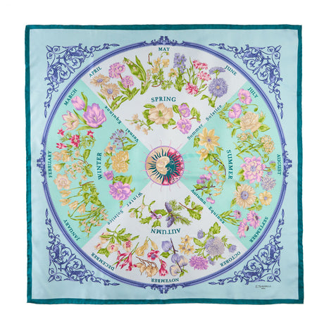 VIOLET AND TAUPE SILK SCARF 90 The wheel of seasons