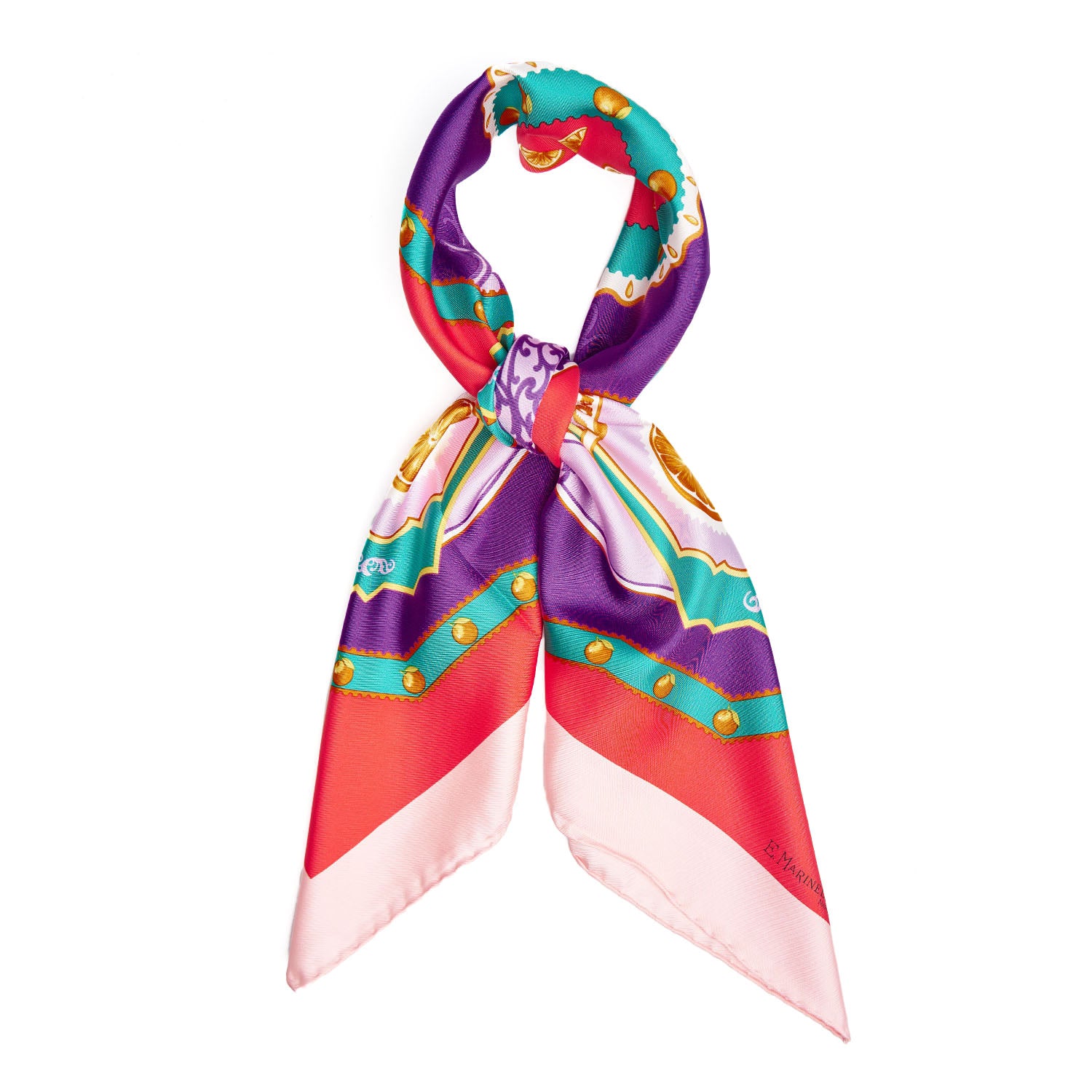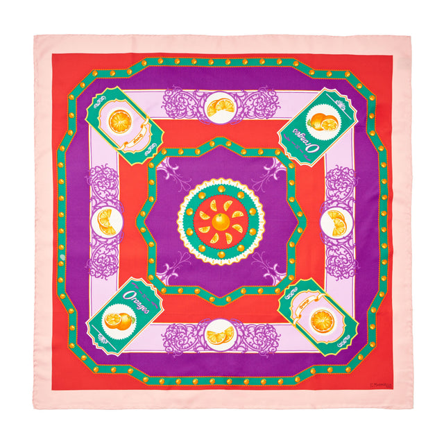 Pure Silk Scarf, a vibrant accessory to add an original touch to any style. The lightweight silk, adorned with the image of the orange, one of the symbolic fruits of the Mediterranean, makes our scarf a timeless and always elegant accessory.