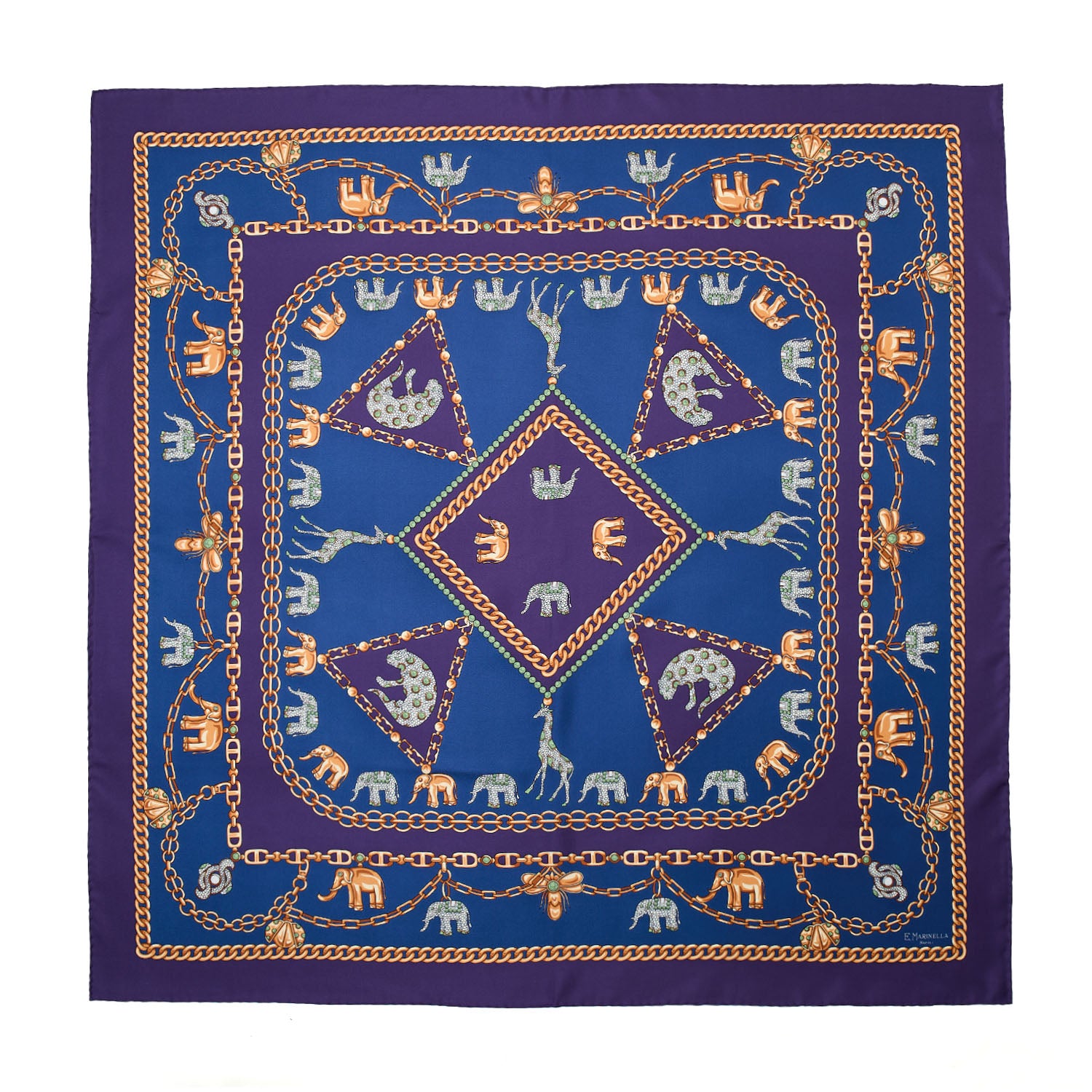 The Lucky Elephants print on the E. Marinella silk scarf evokes a beloved symbol of protection, strength, and good fortune for the Maison.