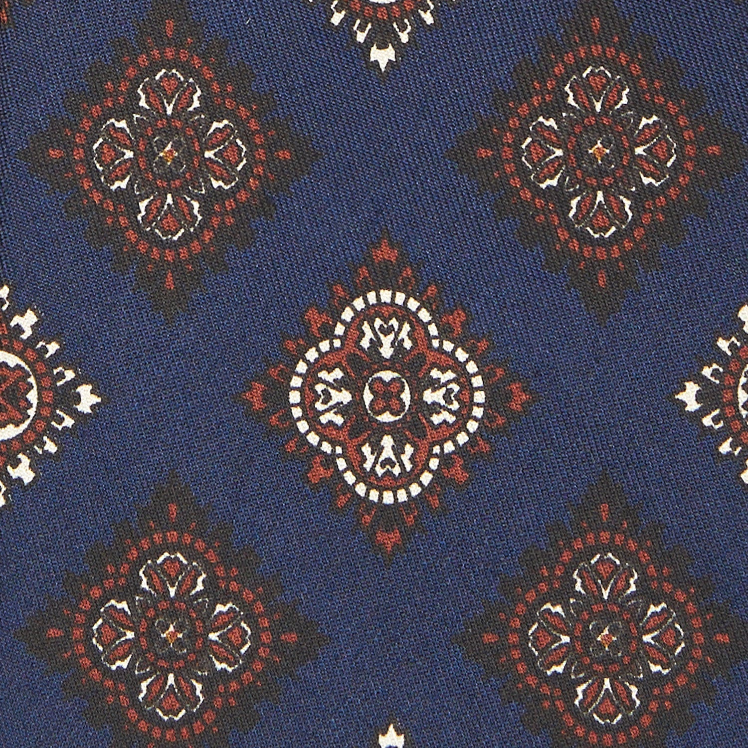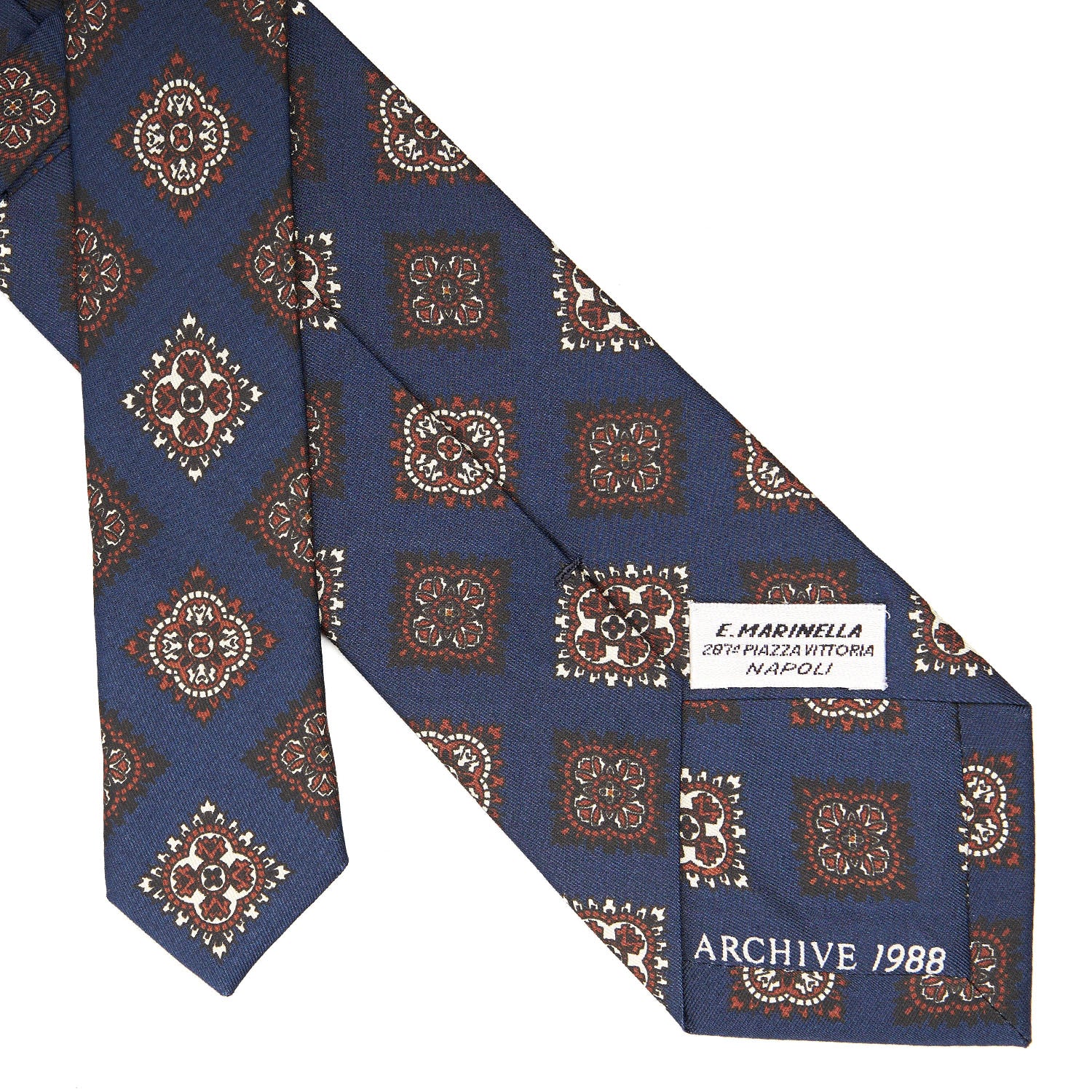 This tie belongs to the Archivio collection. which proposes historical prints from the 1930s to the 1980s in a modern way. The patterns of the 1980s see a return to the "caramelloni" designs. with touches of light green and blue. A tie with a retro taste. that still feels current.