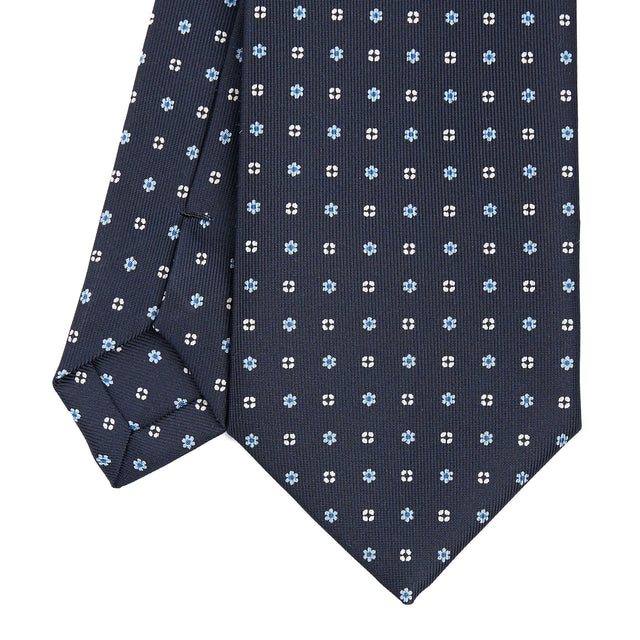 The E. Marinella tie is a hand-made product. From the hand-printed silk, to the individual cutting of each square, to the hand-closing of the final product. Characterised by rich colours, never excessive and by floral or geometric micro-designs. The tie is tipped with the same fabric as an extra detail. 3 fold tie