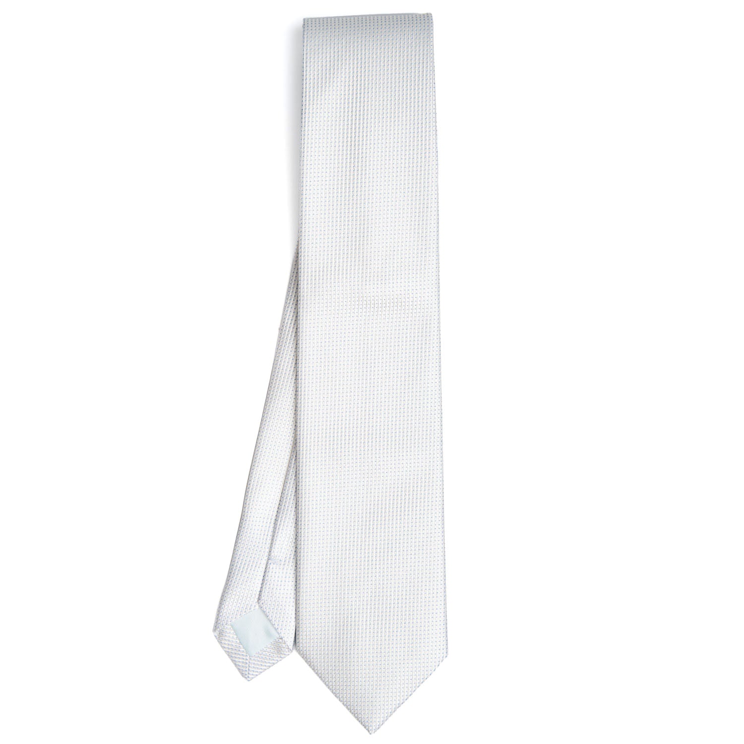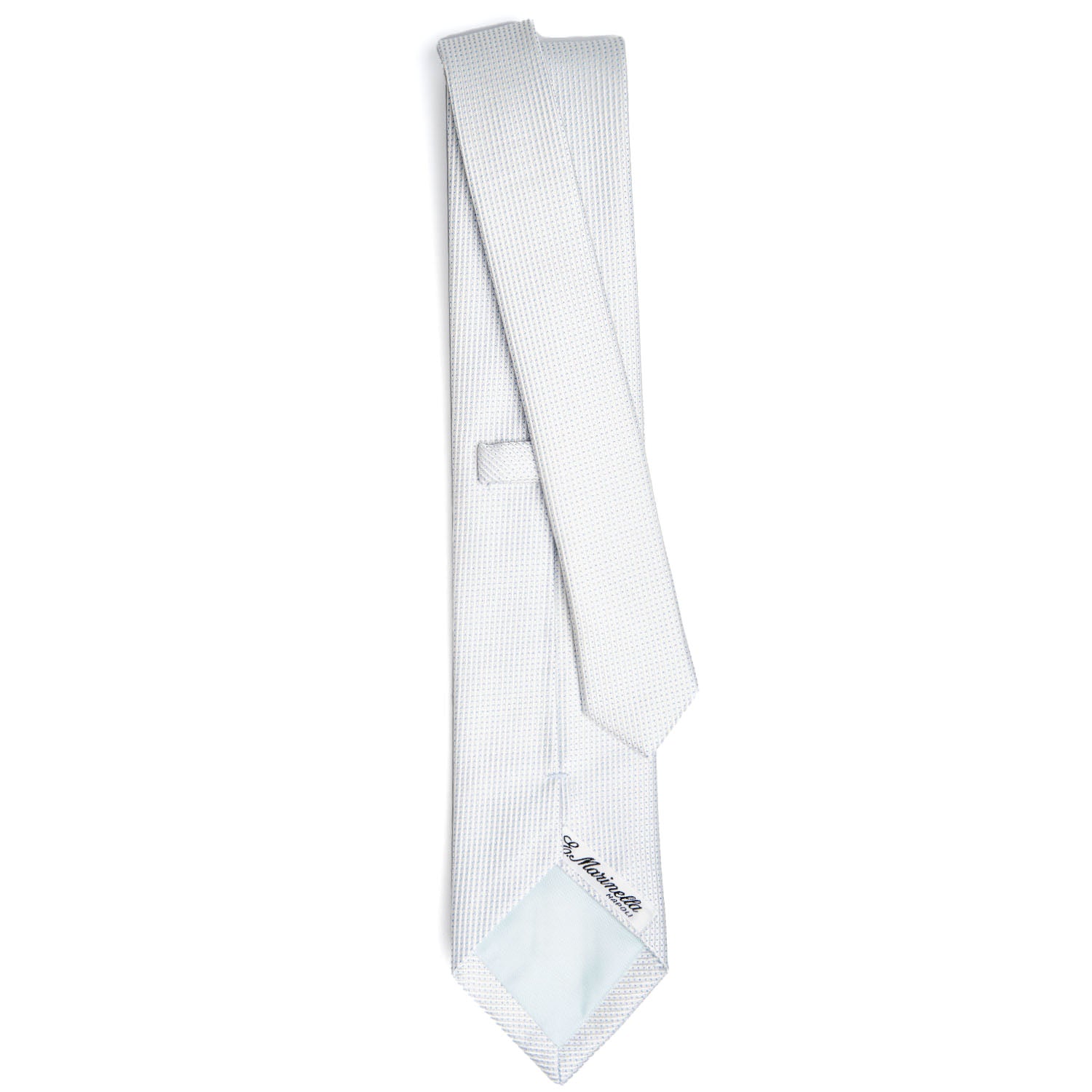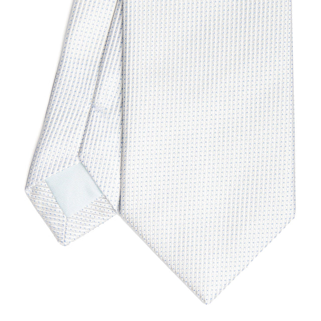The jacquard silk tie is entirely handmade. The silk weaving process involves intertwining warp and weft threads, creating raised patterns. The denser fabric provides better support for the knot, ensuring a perfect look throughout the day. The so-called "finto unito" tie is perfect for spring and summer weddings in less formal settings. Suitable for grooms, fathers, and witnesses. 3-fold tie