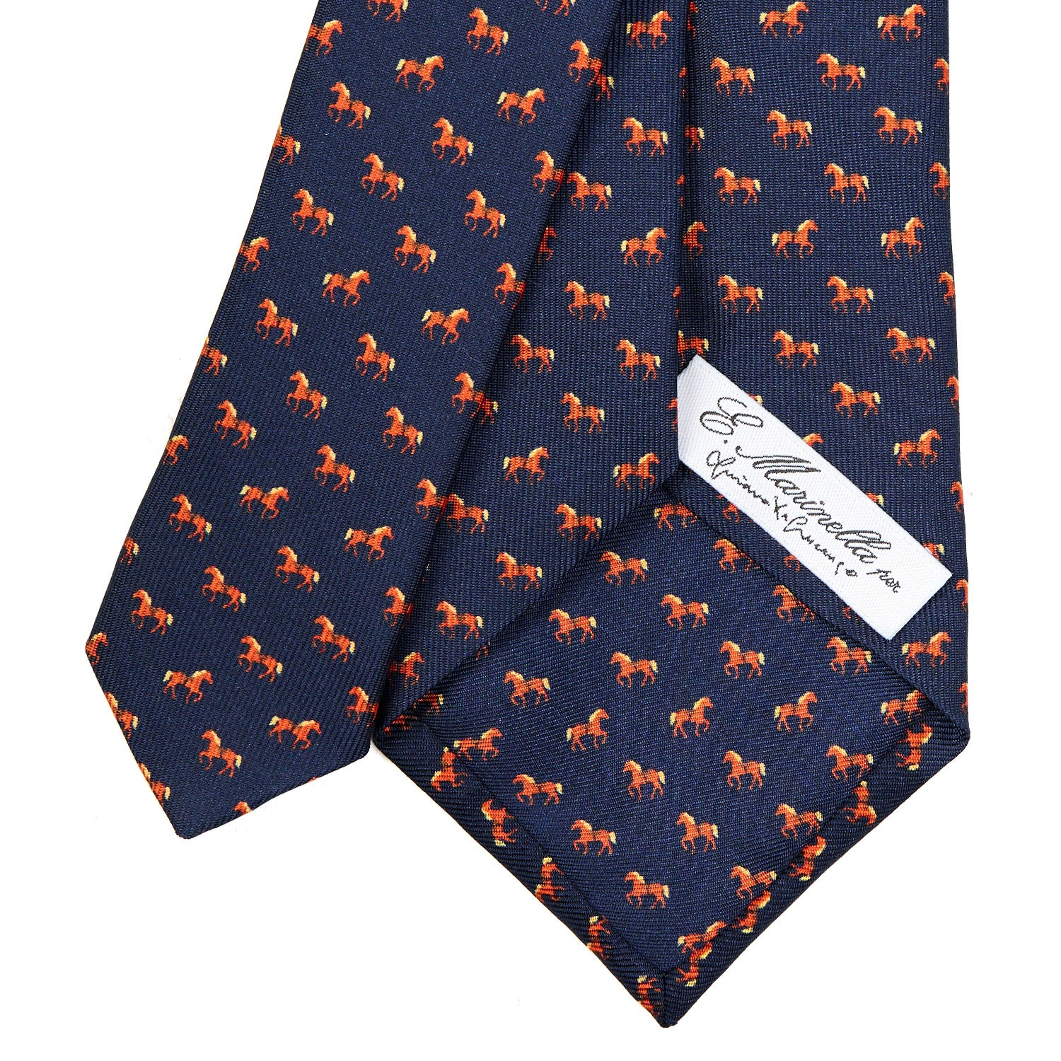 DARK BLUE CLASSIC SILK TIE "CAVALLUCCIO ROSSO"