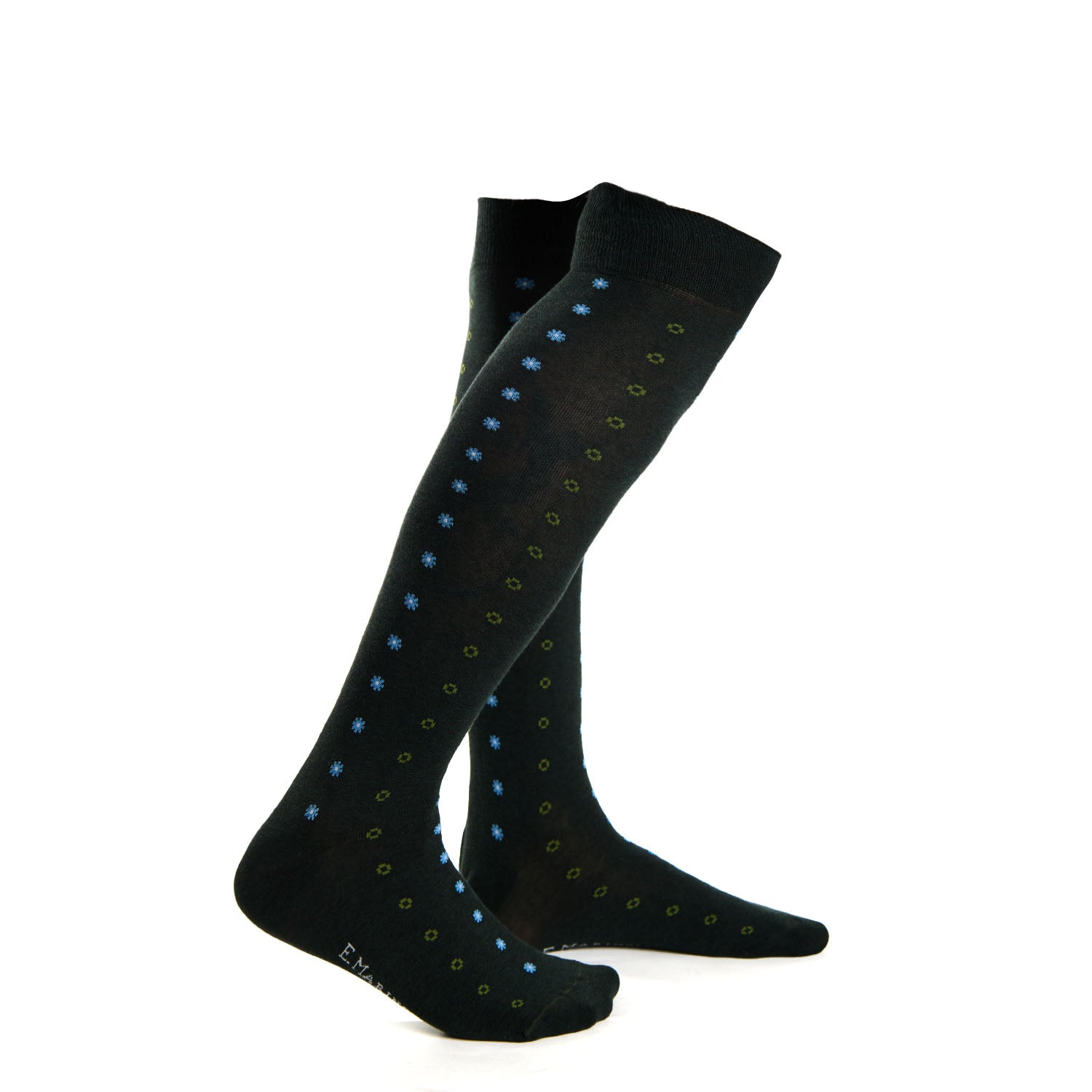 Soft-touch men's knee-high socks, suitable for formal or casual looks. The cotton fabric is enhanced with the micro floral pattern typical of the Maison.
