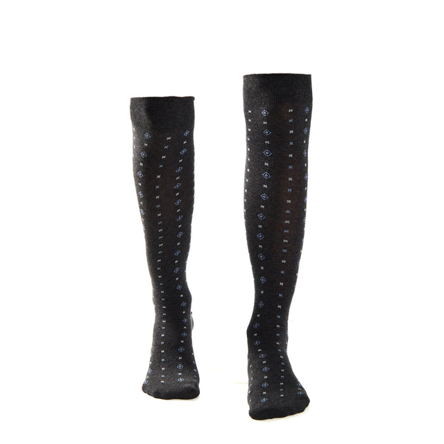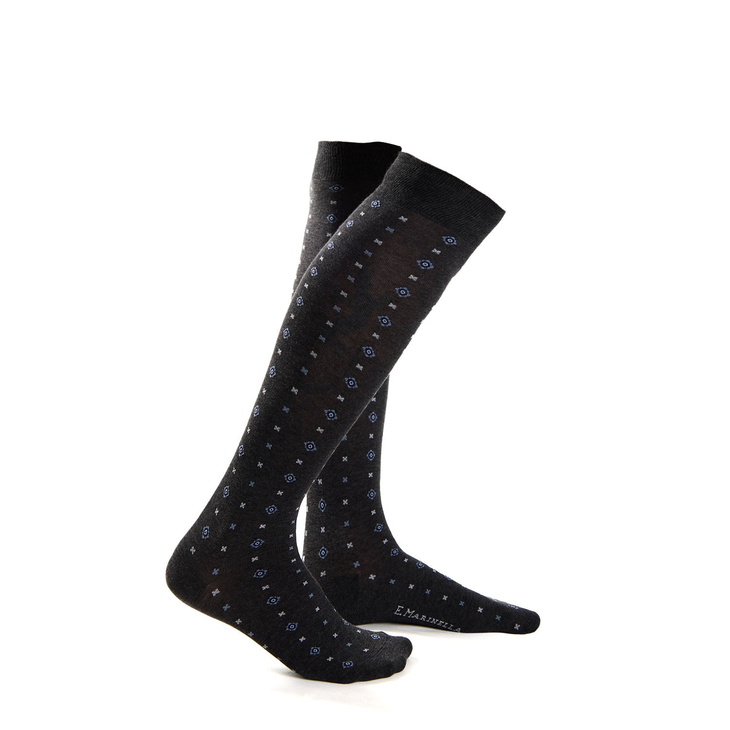 Soft-touch men's knee-high socks, suitable for formal or casual looks. The cotton fabric is enhanced with the micro floral pattern typical of the Maison.
