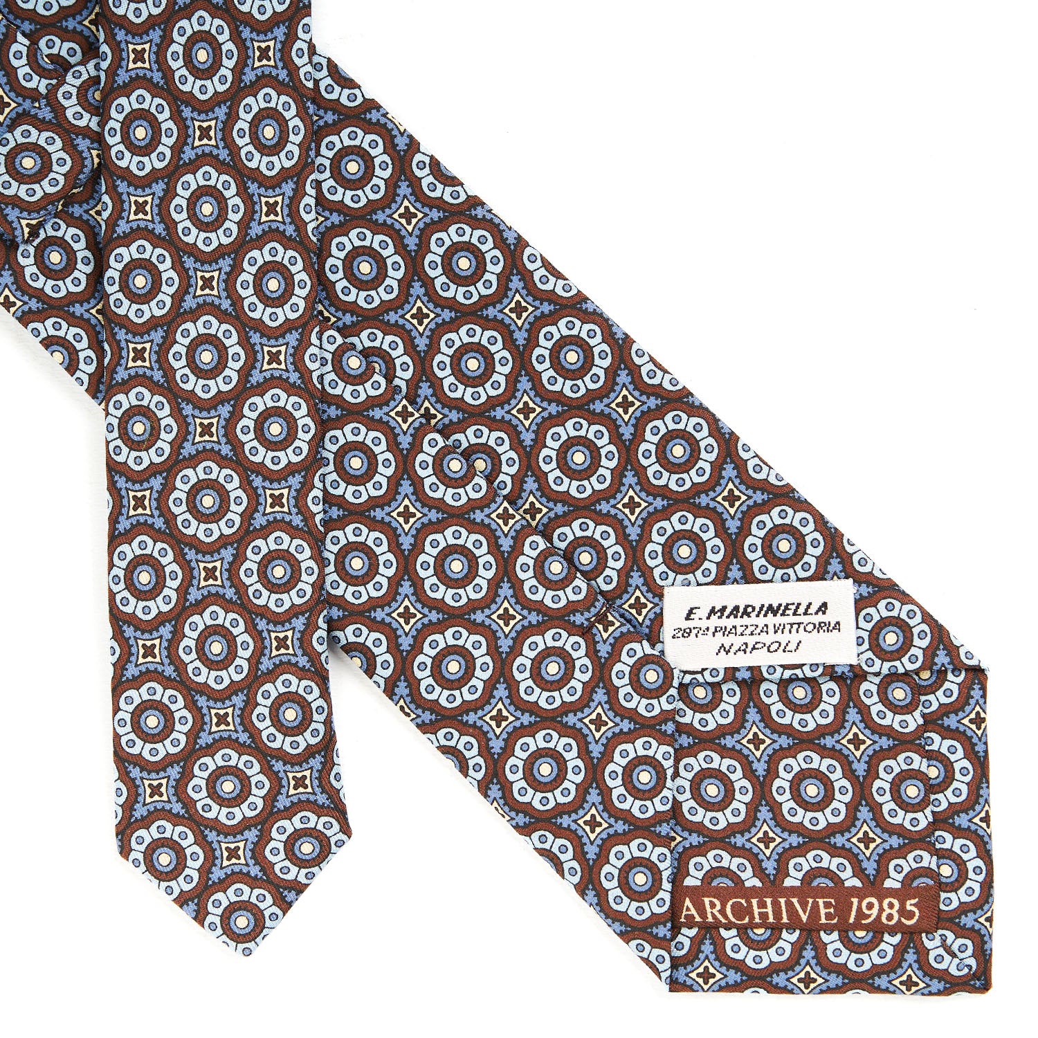 This tie belongs to the Archivio collection. which proposes historical prints from the 1930s to the 1980s in a modern way. The patterns of the 1980s see a return to the "caramelloni" designs. with touches of light green and blue. A tie with a retro taste. that still feels current.