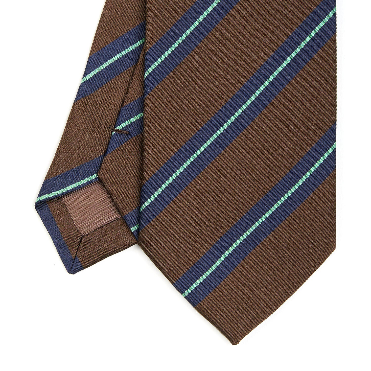 Striped patterned ties represent an important accessory in the male wardrobe. They are characterised by a striped pattern with various color combinations. Very elegant and in perfect British style, today they are also used as casual ties and are often worn with blue blazer.