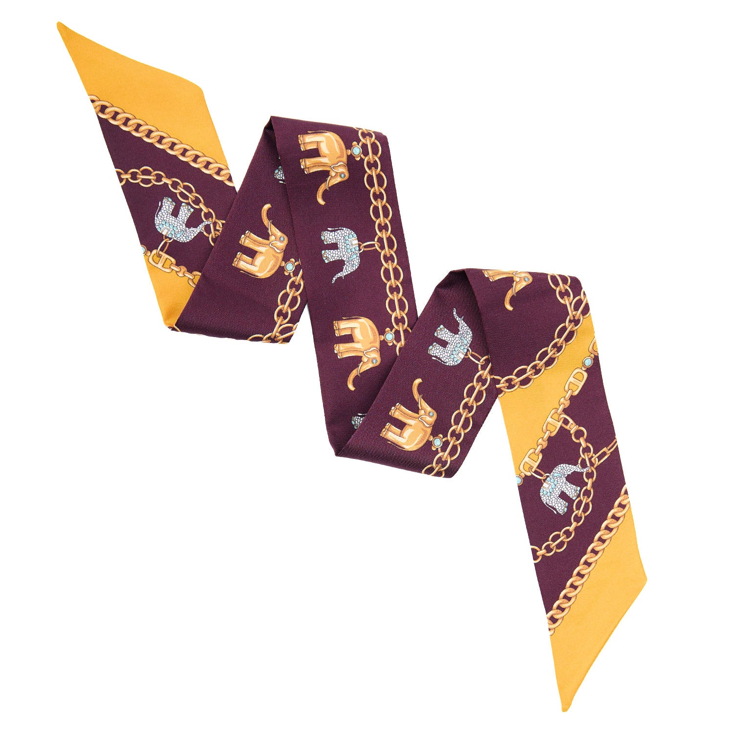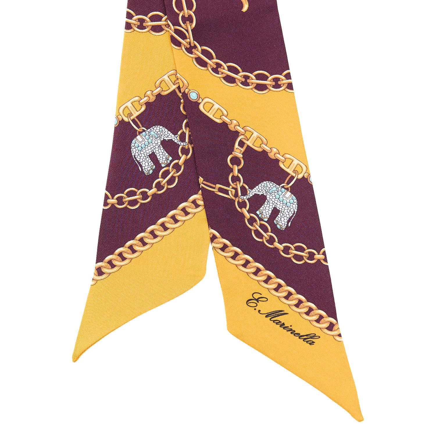 Entirely crafted in printed silk and inspired by the Lucky Elephants print on the E. Marinella silk scarf that evokes a beloved symbol of protection, strength, and good fortune for the Maison. Wear it in your hair, around your wrist, or as a stylish detail on your bags.