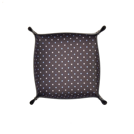 E. Marinella's handcrafted vide poche, available in various sizes, are a refined and functional addition to your daily life. In silk leather, featuring the micro-patterns of the Maison's iconic silks, they are characterized by corners fixed with four metal rivets. A sophisticated decorative item that combines style and practicality.