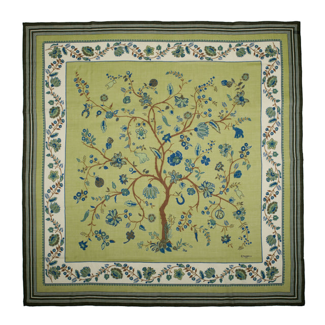 The E. Marinella women's stole, measuring 140 x 140 cm, is a sophisticated and versatile accessory made from wool and cashmere. Its lightweight, enveloping quality is enhanced by the collection's Tree of Life, a symbol of rebirth and growth, makes our square scarf a timeless and always elegant accessory.
