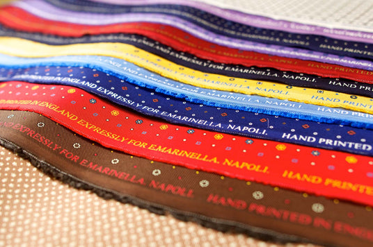 The silks used for the iconic ties and other silk accessories are hand-printed exclusively for E. Marinella using traditional methods. The printing is performed with millimeter precision, thanks to screens engraved by skilled artisans. The silk undergoes an extra washing treatment, transforming the process into a ritual that gives the fabric an irresistibly delicate luminosity.