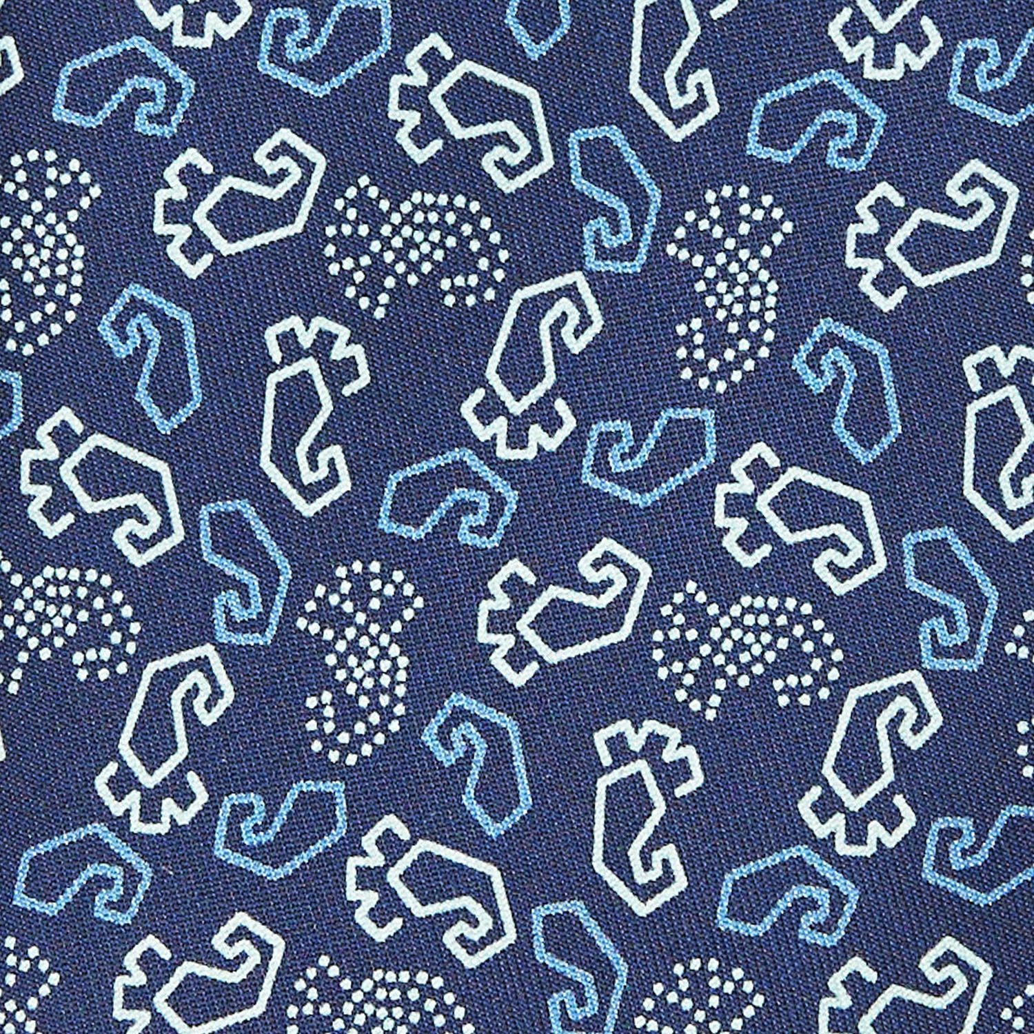 La cravatta fa parte della collezione Archivio, che propone in chiave moderna le stampe storiche dal 1930 al 1980. Gli anni '70 sono caratterizzati da motivi più vivaci e densi, a volte anche barocchi. I colori sono chiari con sprazzi di arancio, rosso brillante e bianco. Una cravatta dal carattere prepotente.