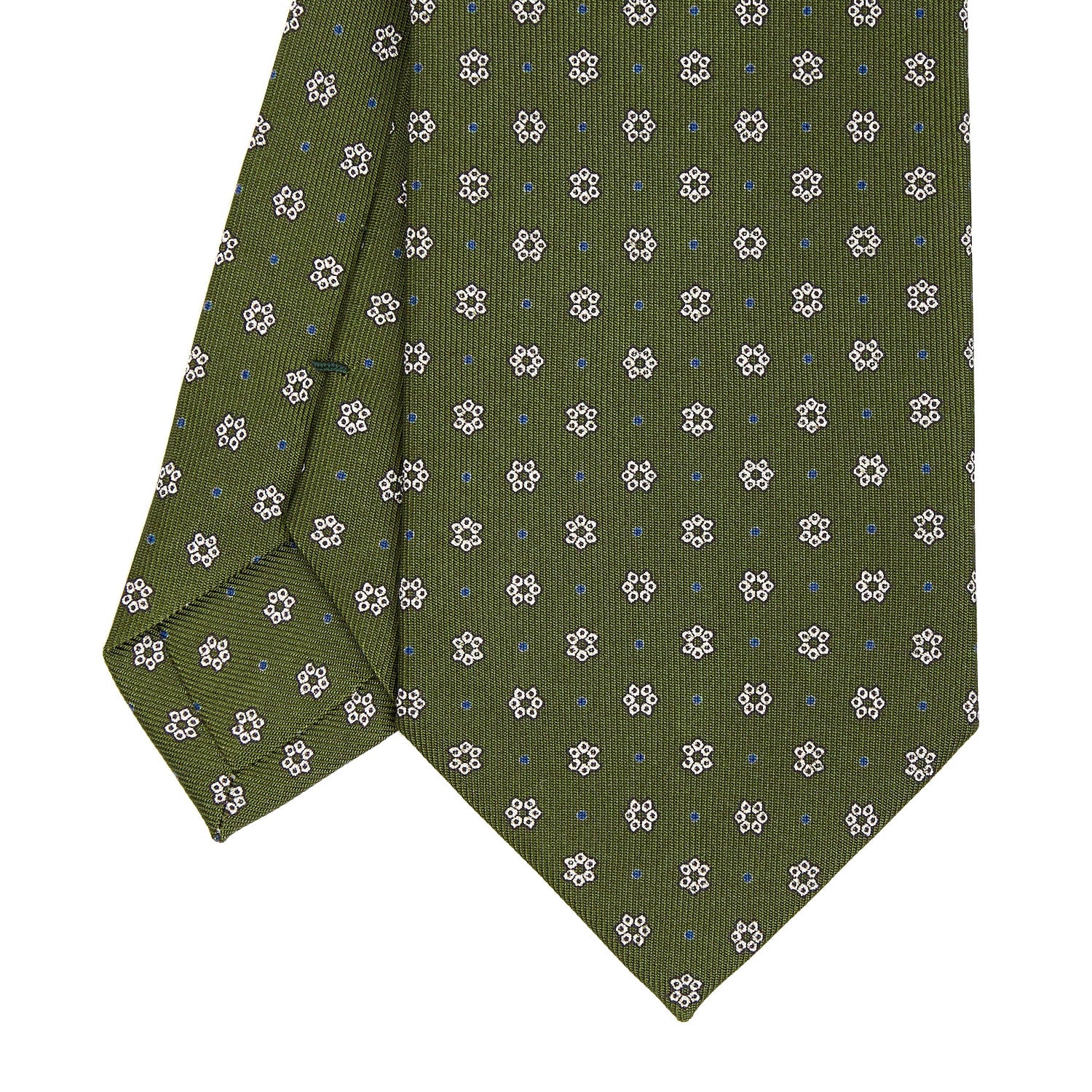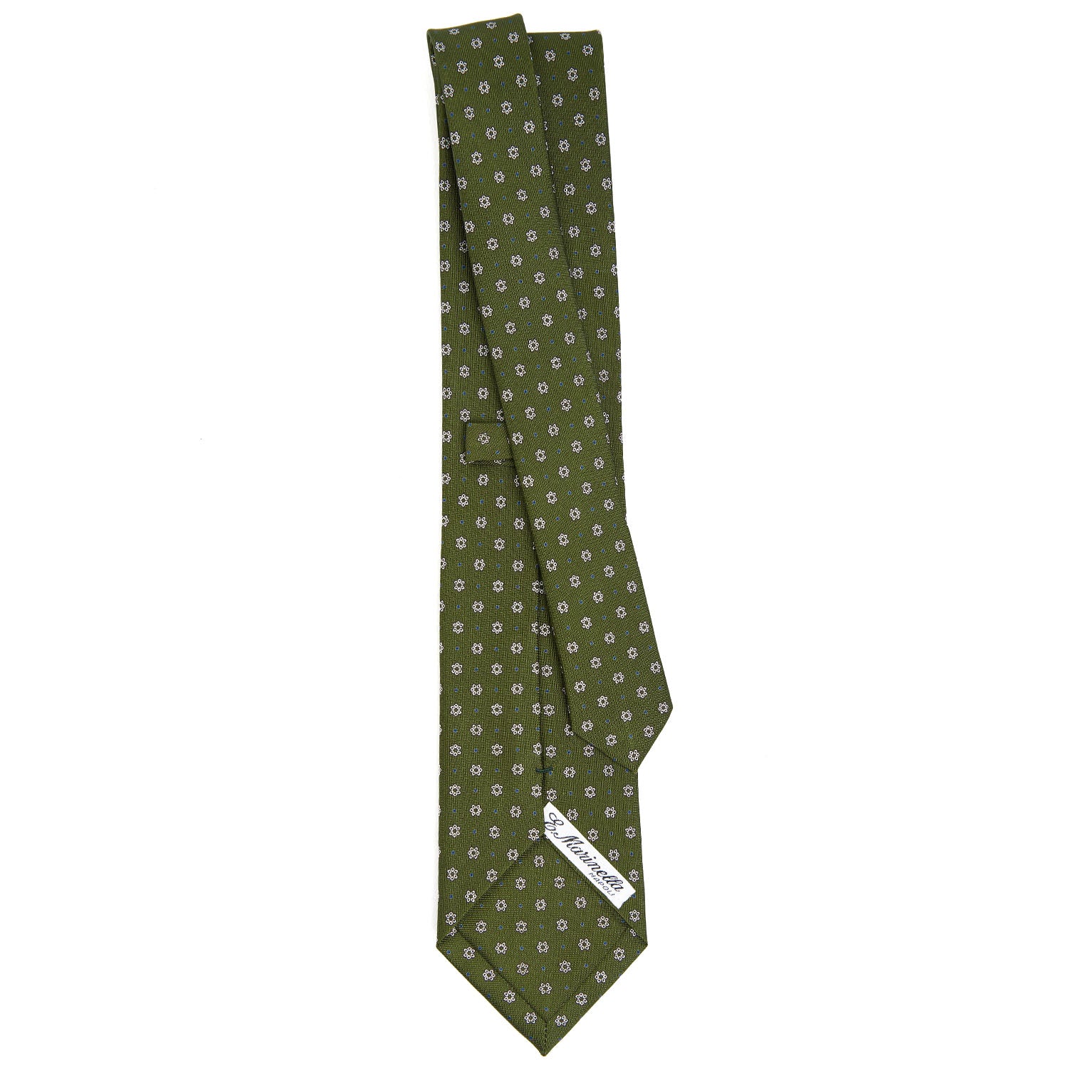 La cravatta E.Marinella è un prodotto totalmente artigianale. Dalla stampa a mano della seta al taglio singolo del tessuto, alla chiusura del prodotto finito. Caratterizzata da colori vivaci ma mai eccessivi e da microfantasie floreali e geometriche, si distingue anche per la fodera realizzata con lo stesso tessuto fantasia. Cravatta 3 pieghe