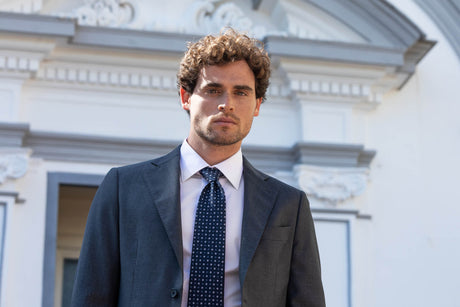 CRAVATTA SARTORIALE IN SETA JACQUARD BLU